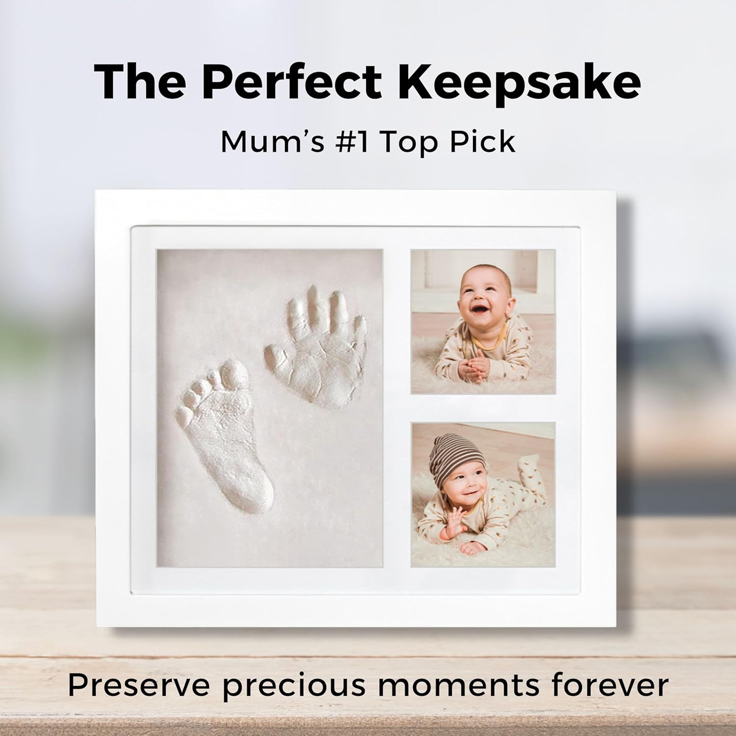 Baby Safe Hand and Footprint Frame Kit, 0-3 Years Newborn Boy & Girl, DIY Non-Sticky Clay Imprint Personalised Keepsake Gifts Milestone Baby Picture Frames Registry Nursery Decor Casting Kit