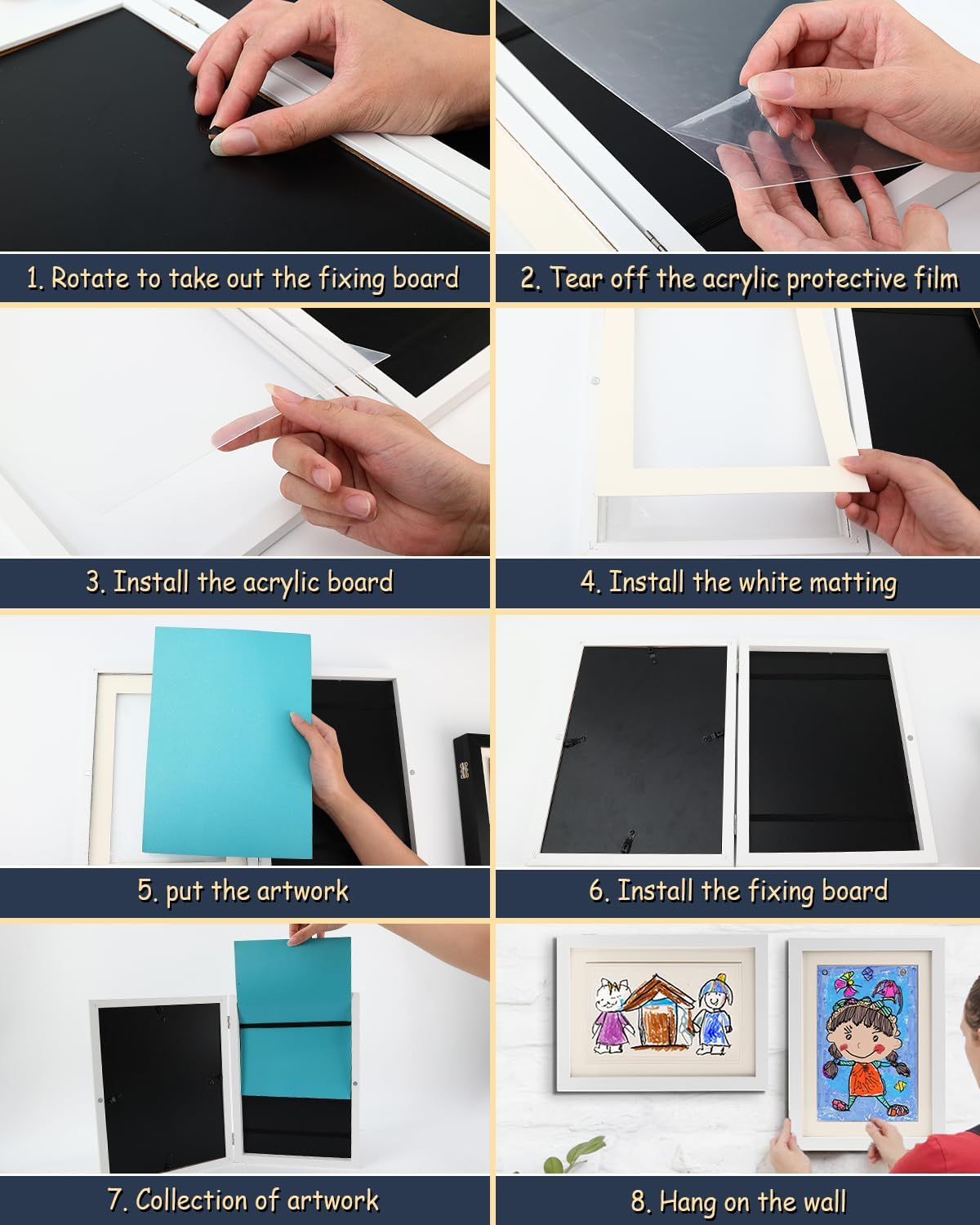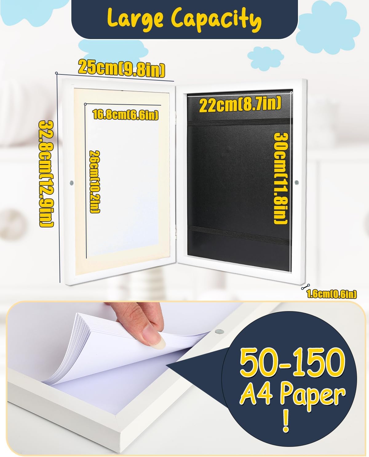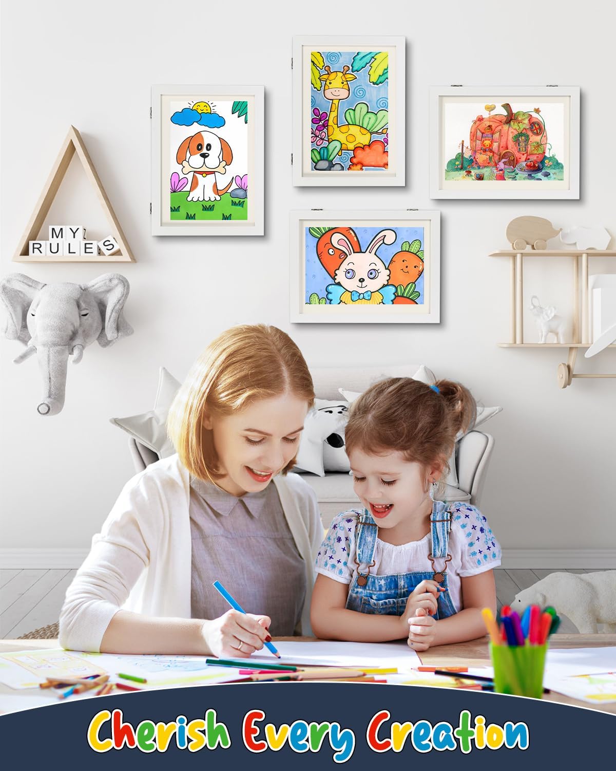 High-Quality Material: Kids artwork display frame is made of high-quality MDF and glossy acrylic board, offering a clear view and enhancing the artistic atmosphere. With smooth edges and durable design, these frames are a stylish addition to any room