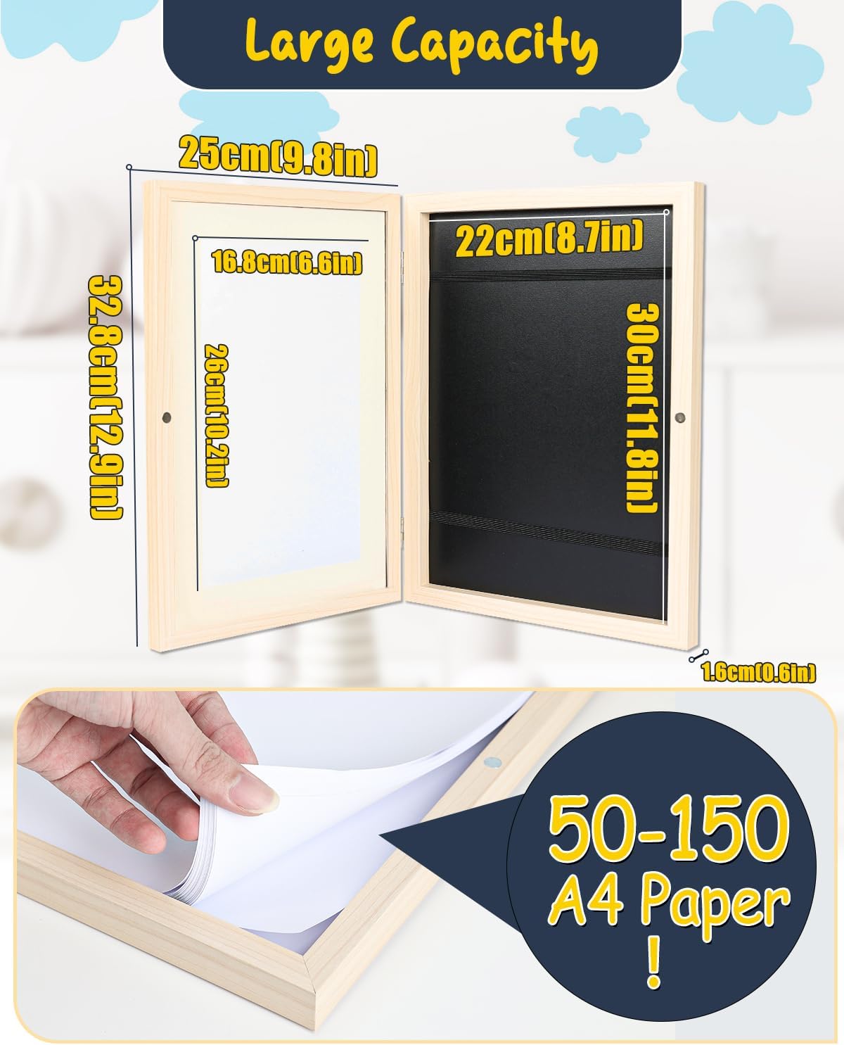 Sufficient Storage Capacity: Children’s art photo frames have a large capacity of 150 pieces, which makes them an ideal choice for collecting and displaying children’s artworks and cultivating their love for art