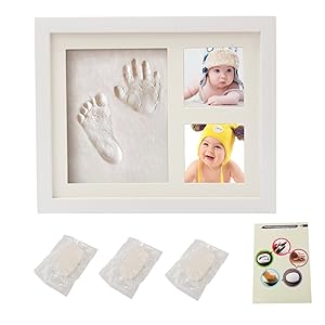 Perfect Baby Gift : The baby footprint kit & handprint kit baby photo frame is with non-toxic clay which can collect the baby’s handprint and footprint and packed with a nice giftbox. Really a special gift and souvenir to record the baby’s lifetime at the very beginning.
