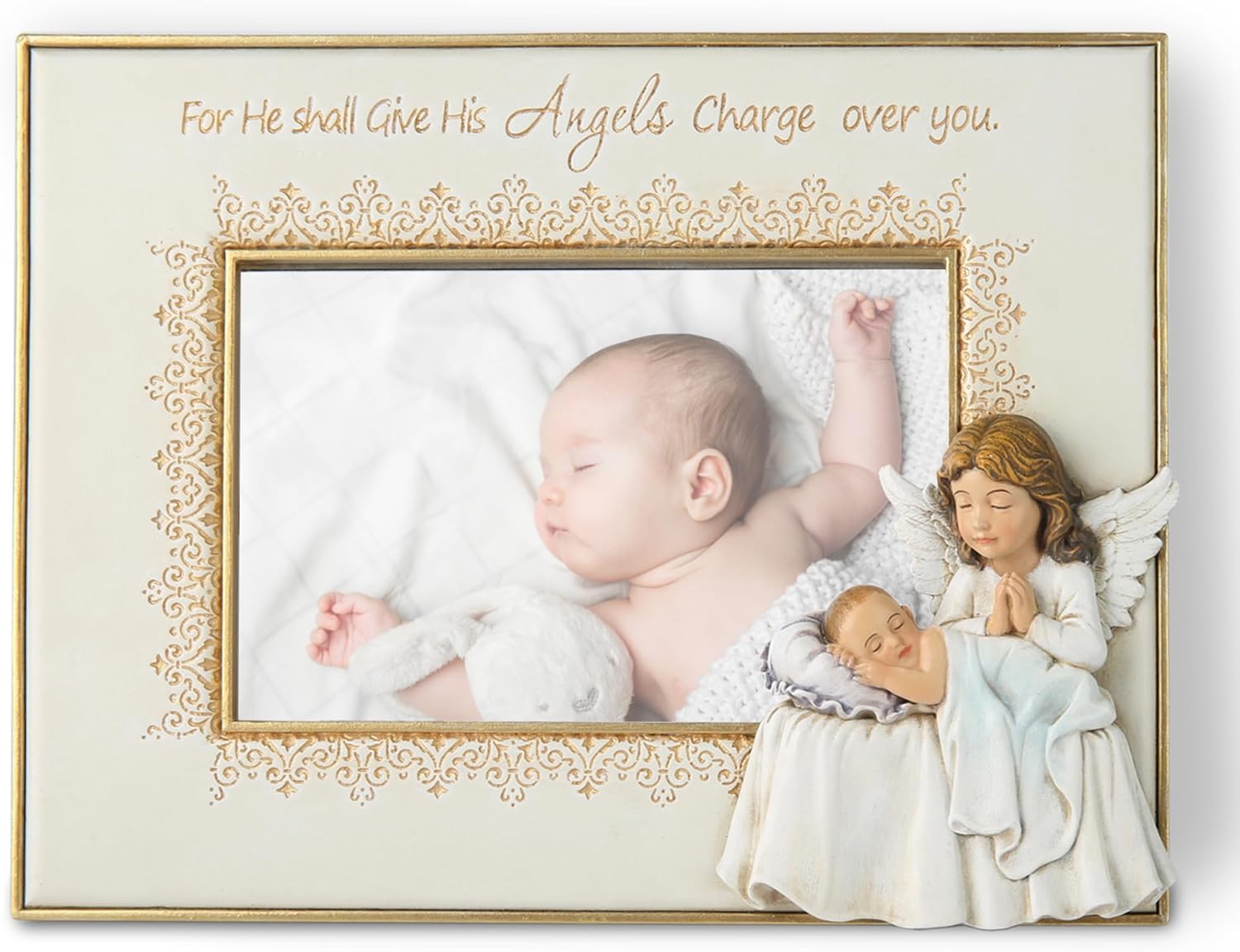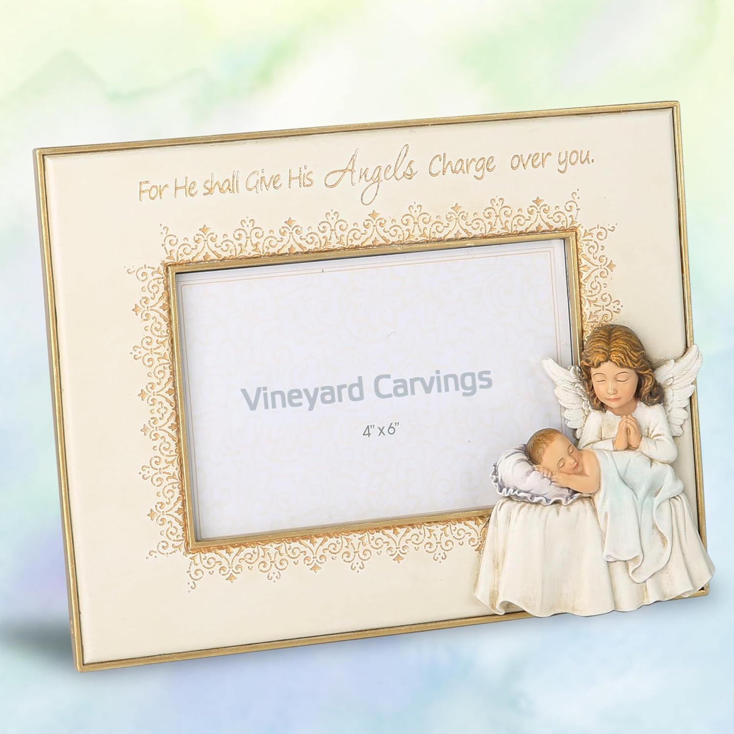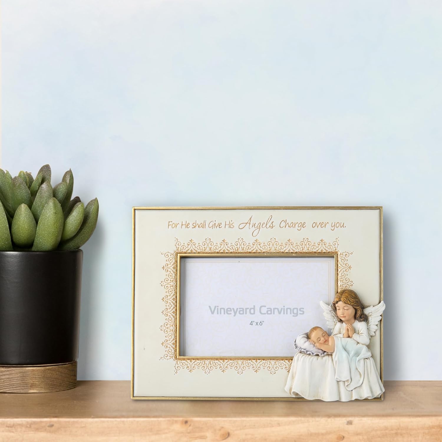 Grace4Joy Baby Picture Frames – Baptism Photo Frame for Baby Girls or Boys, Hand Painted Guardian Angel Photo Frame Catholic Gifts for Newborn Baby Shower, Christening, Birthday