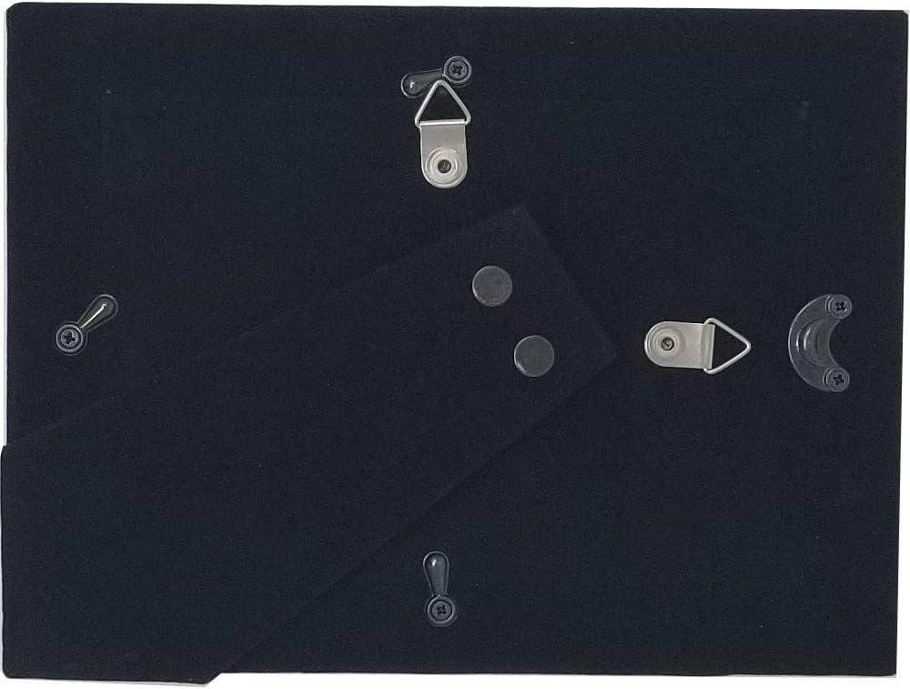 This new moon and back black metal picture frame gift can make a suitable gift for new baby in 2023, pregancy announcement, updated family picture/portrait with the new grandson and/or granddaughter. The frame has a folding easel on the back and hangers to hang the frame on the wall. The design reveals the white/grey tint under the black anodized aluminum.