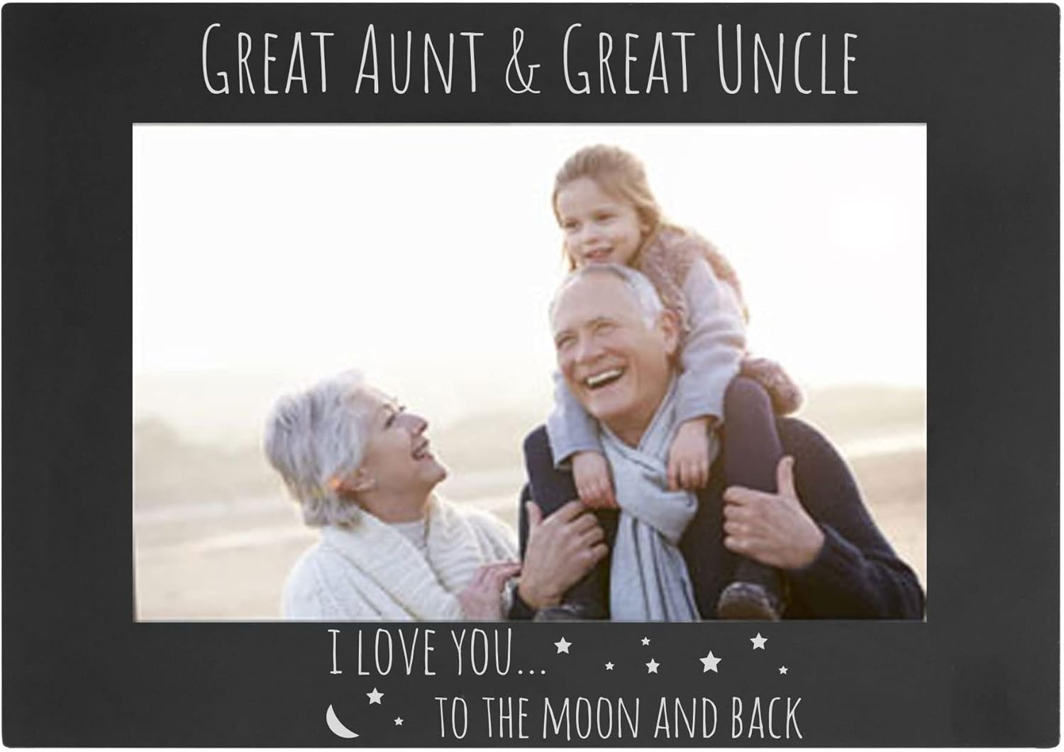 Great Aunt & Great Uncle I Love You To The Moon And Back – Anodized Aluminum Metal Hanging/Tabletop Personalized Group Family Photo Fits 4×6 Landscape Picture Custom Black Frame