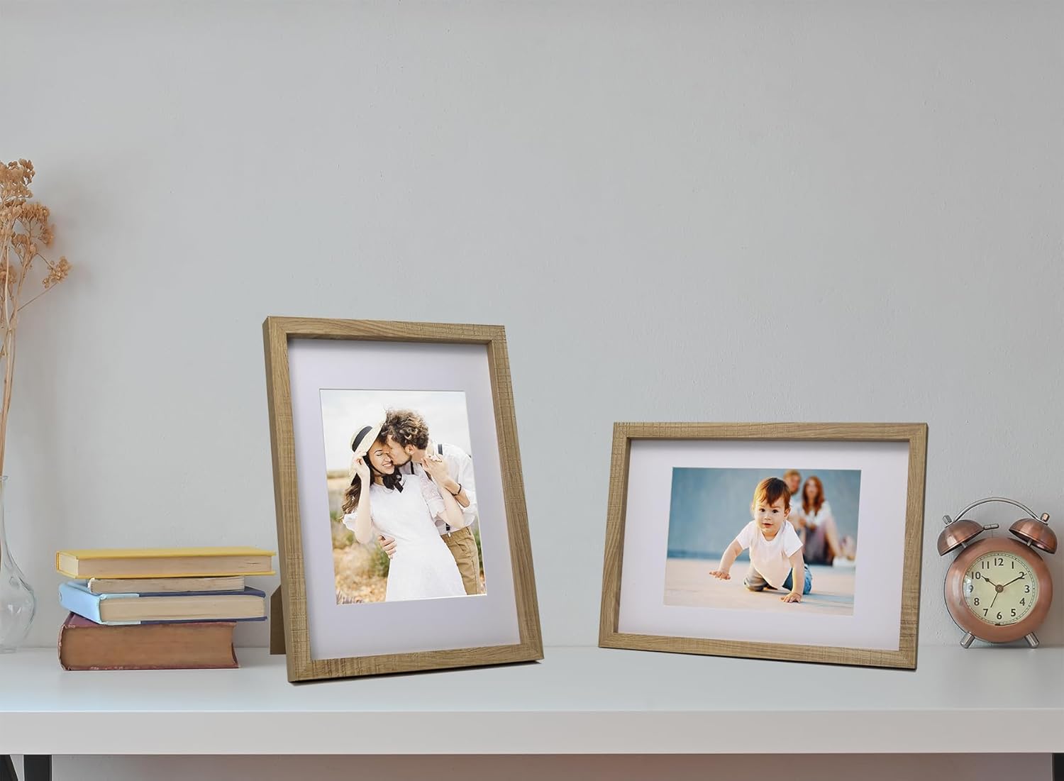 Natural Wood Effect A4 Photo Frames set of 3 with Mount for A5(6 x 8 ”),A4 Gallery Boxed Picture Frames With Mount for A5, A5 picture frames, Modern A4, A5 documents frames.