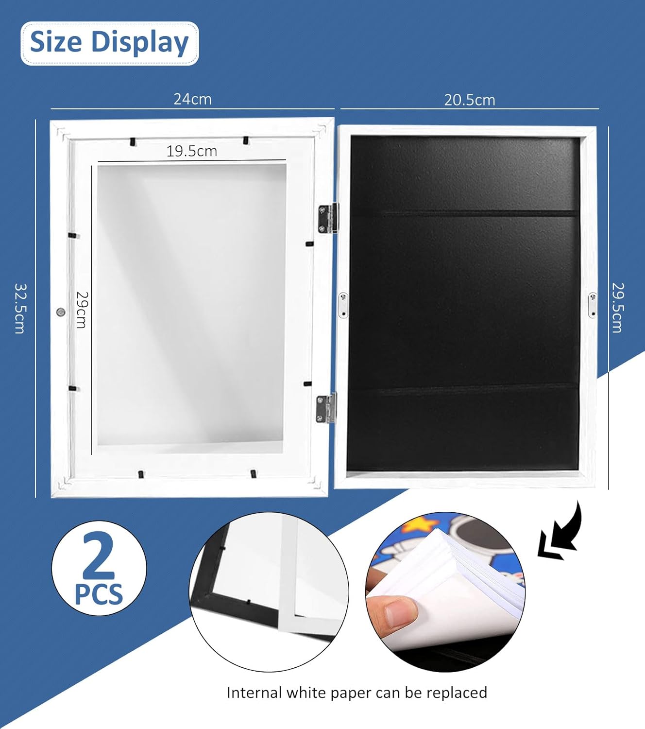Pack of 2 Art Photo Frames for Children, A4 Hinged Wooden Picture Frame, Fillable Photo Frame for Opening, Front Opening for Artwork, Ideal for Children’s Drawings, Art Projects, School, Home or