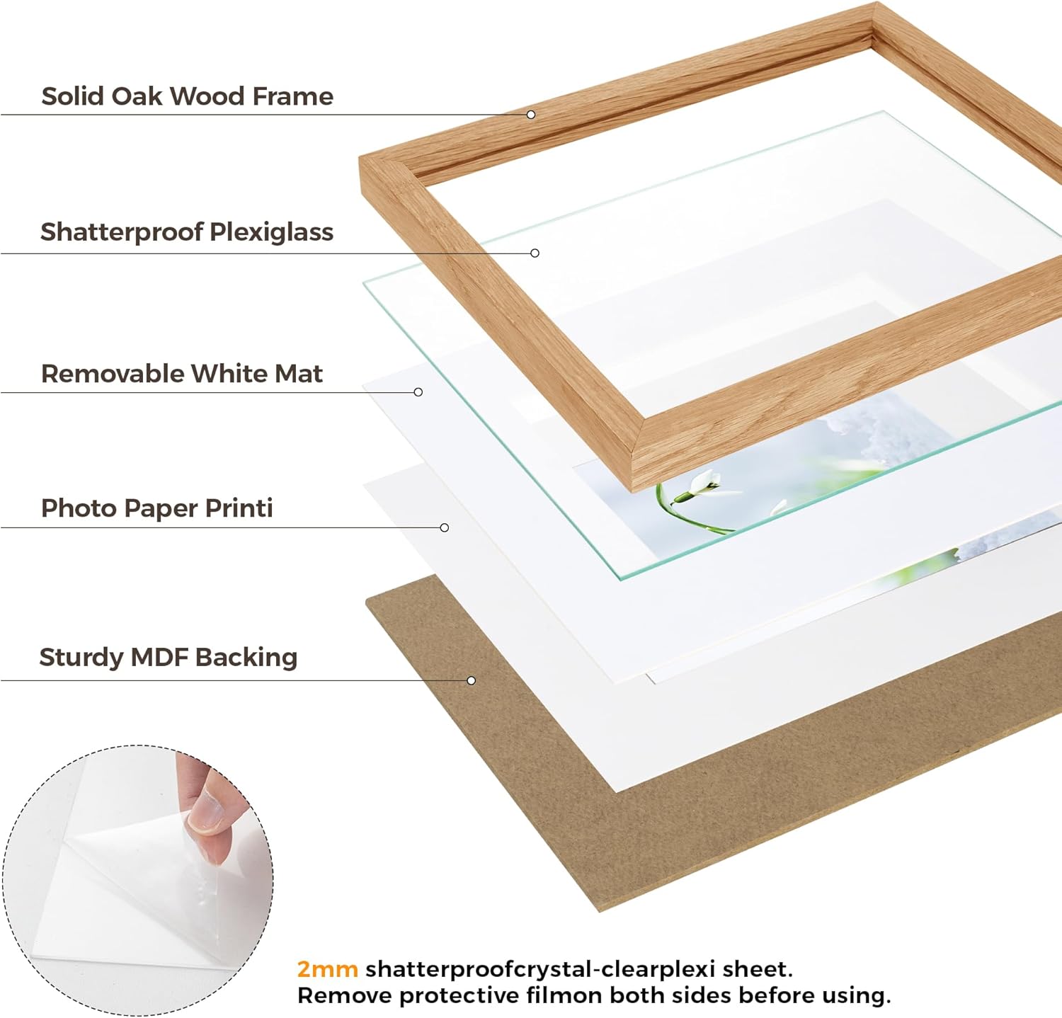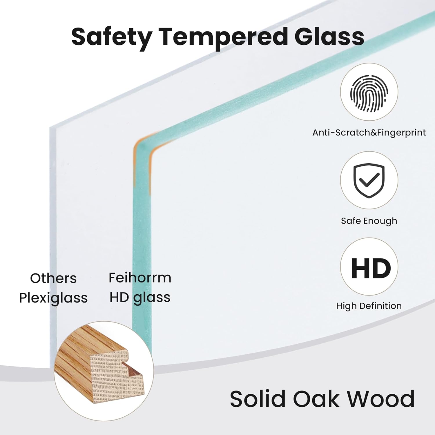 High-Definition Tempered Glass – This oak wood picture frame comes with sturdy 2.0mm tempered glass front, which is clear and lightweight, giving your photo in a good view condition and protecting them from scratches ,fingerprints, dirt, water. What’s more, our glass with edge polished that protect you from scratching by sharp glass edges.