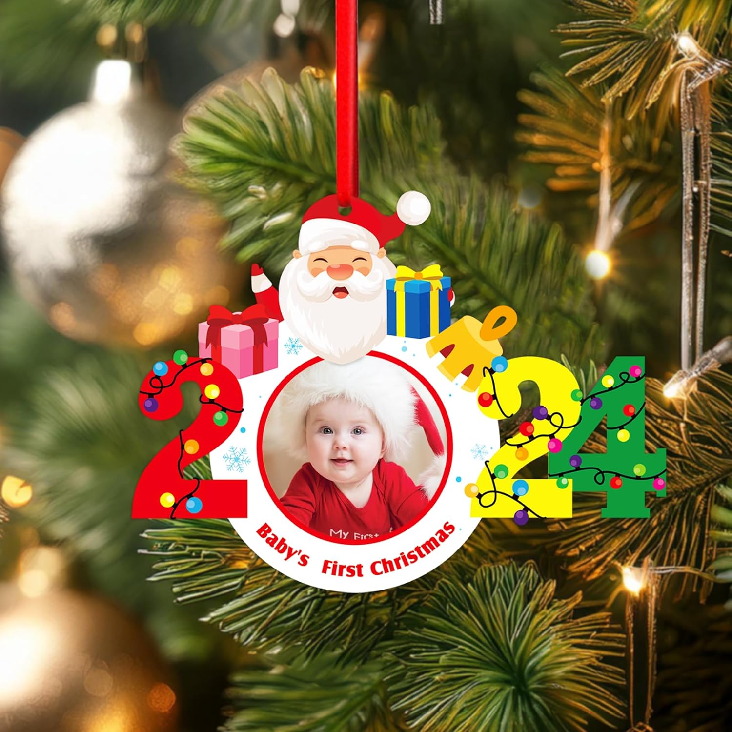 SICOHOME 2023 Baby’s First Christmas Frame Ornament 4″ Personalized Baby 1st Christmas Photo Frame Ornament Santa Gift My First Christmas Picture Frame Ornament for New Parents Mom Dad Presents
