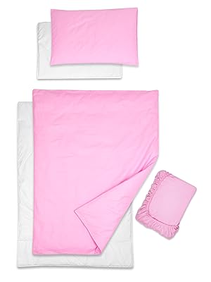 5 Piece Baby Bedding Duvet Pillow with Covers & Jersey Sheet fits 160x70cm Junior Bed (Pink)