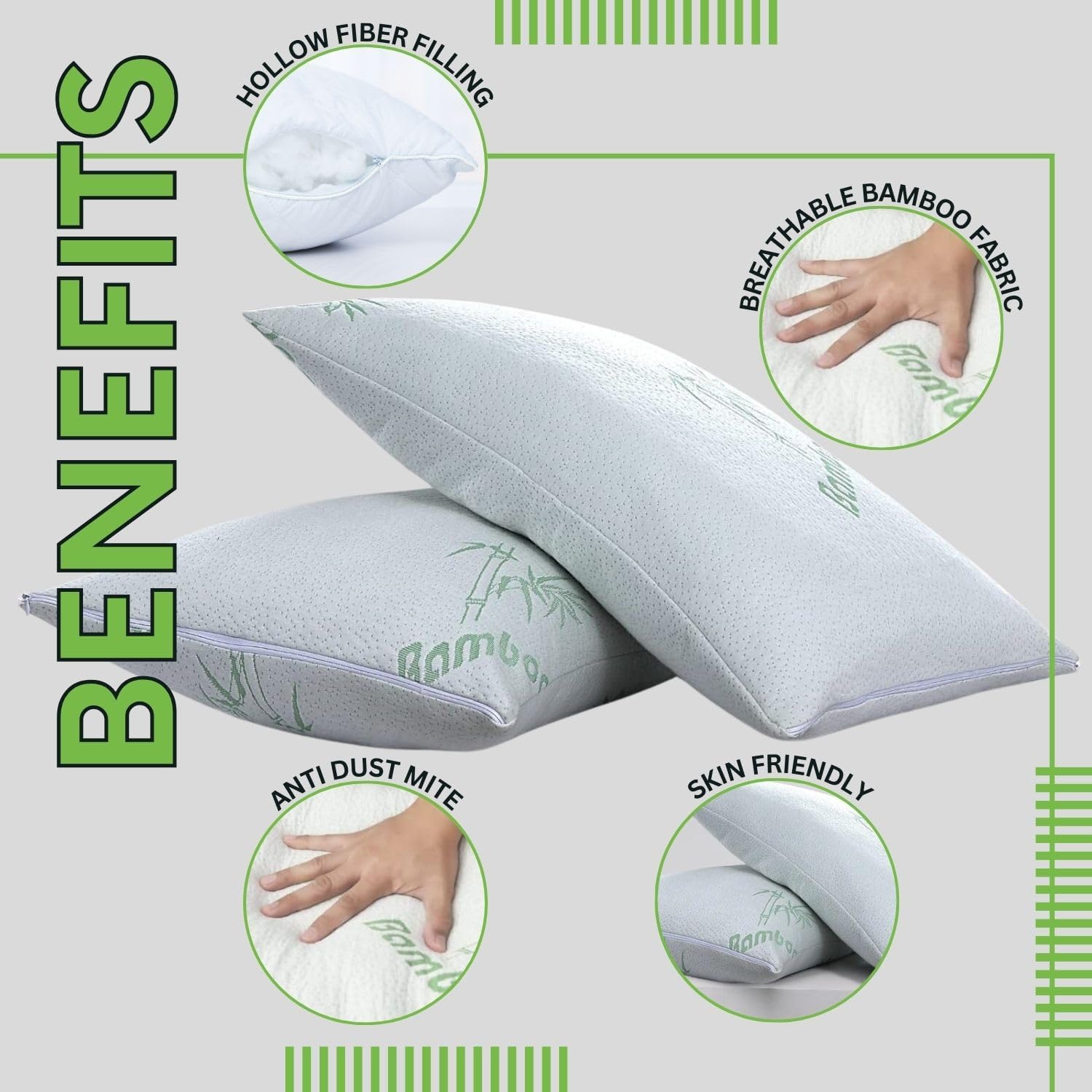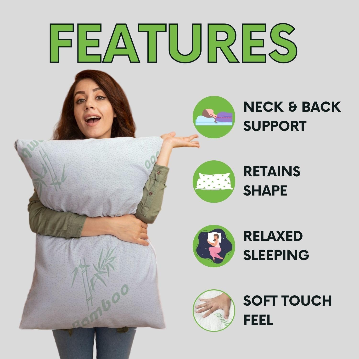 Bedding Home Super Soft Bounce Back Bamboo Pillow Neck & Shoulder support Hypoallergenic & Antibacterial Pillow – Hollow Fibre Filled (2)