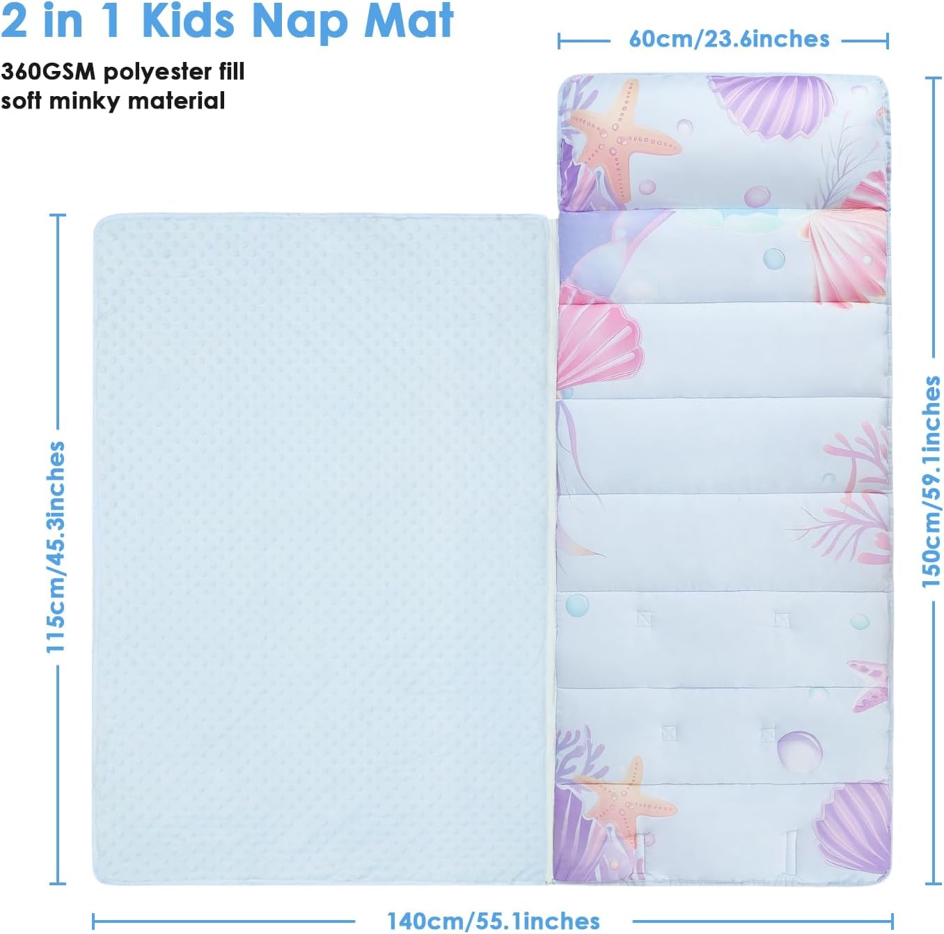 【Cozier & Thicker】Featured with the minky dots fabric inside, and filled with 360GSM polyester in the mat, the nap mat is thicker and softer than regular one, making your children feel more comfortable and relaxed.