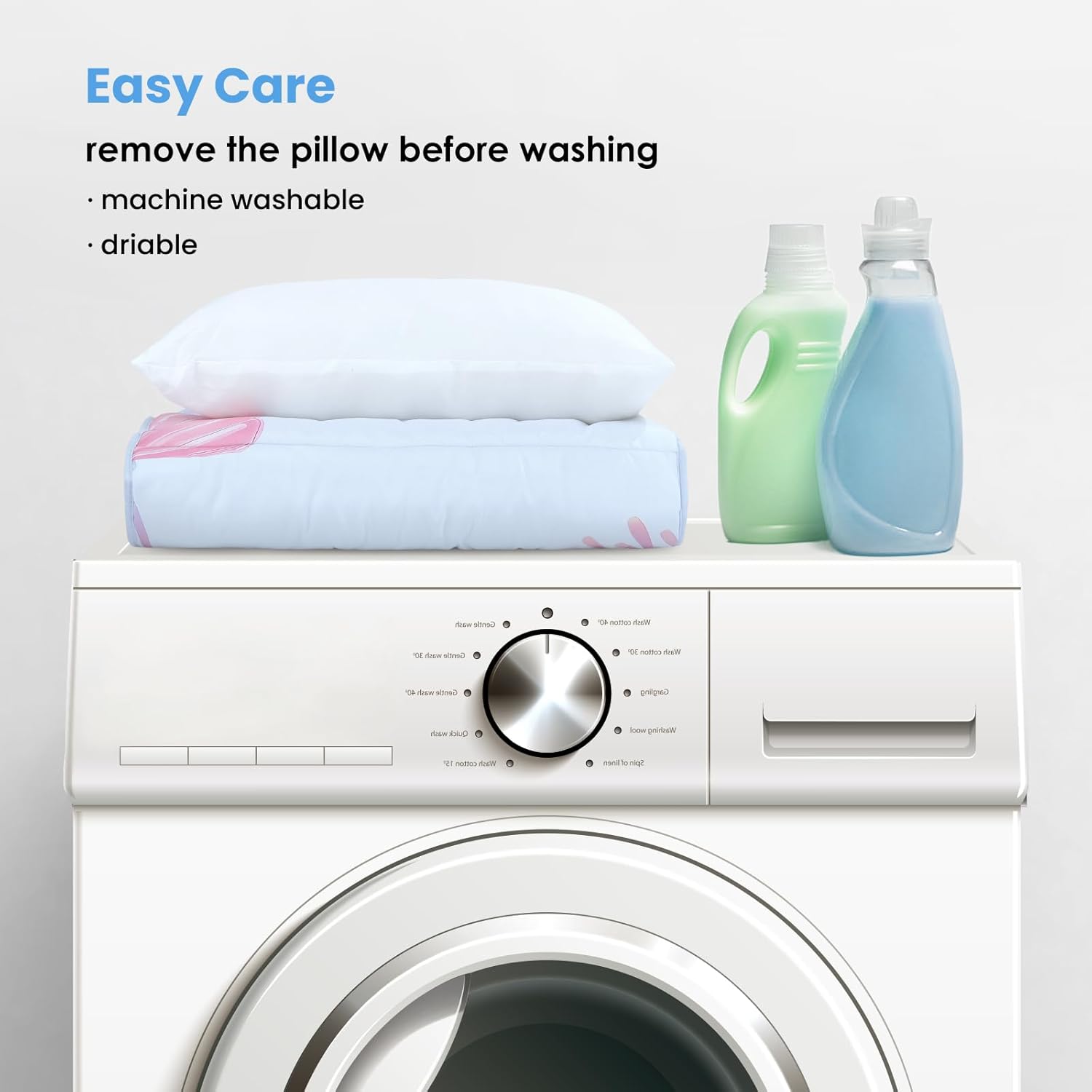 【Machine Washable】:The slumber bag is machine washable and the pillow is removable for easy cleaning, please remove the pillow insert before washing.