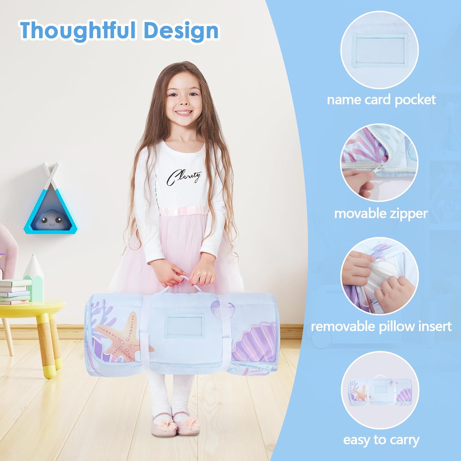 【Vivid Pattern】:This sleeping bag is designed with the beautiful mermaid surrounded by coral and shells on the seabed. It will add more fun for kids who love mermaid. If you have any questions about this purchase,please feel free to contact us,we will help to solve it as soon as possible.