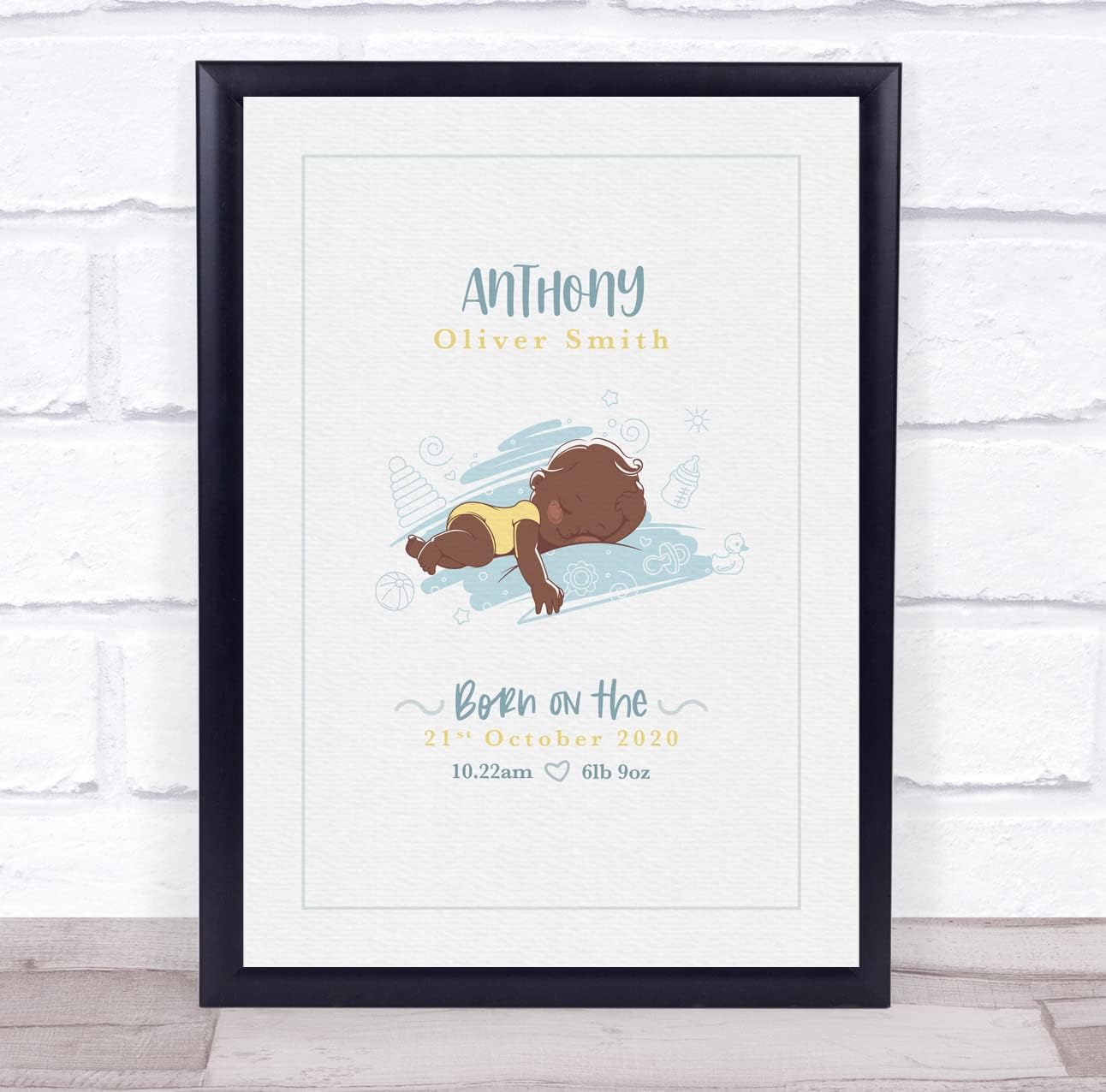 Fingerprint Designs New Baby Birth Details Christening Nursery Dark Skin Boy Pillow Gift Print