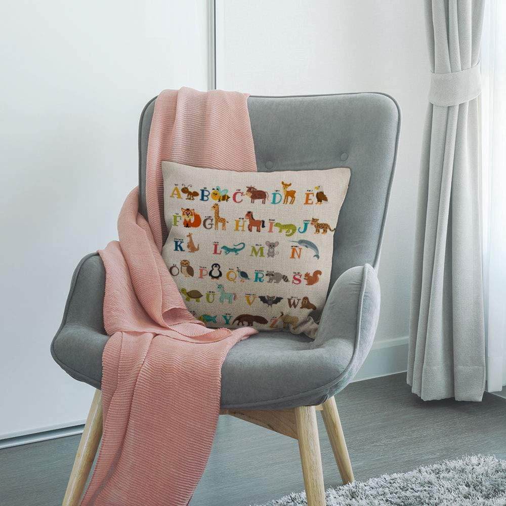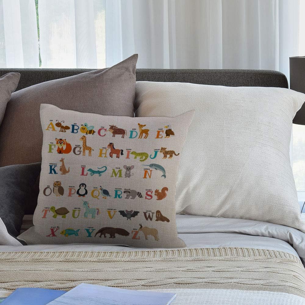 HGOD DESIGNS Cushion Cover Alphabet Cute Zoo Alphabet with Animals Throw Pillow Cover Home Decorative for Men/Women Living Room Bedroom Sofa Chair 18X18 Inch Pillowcase