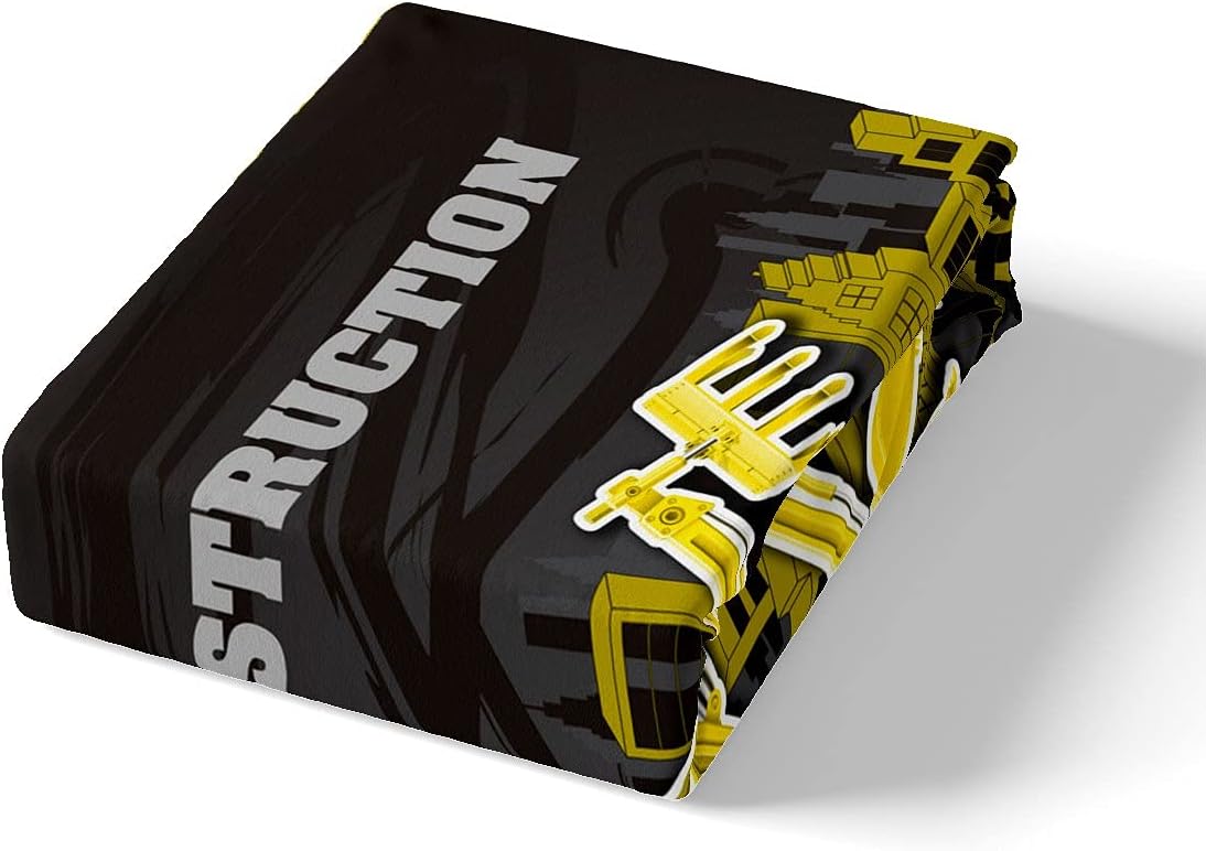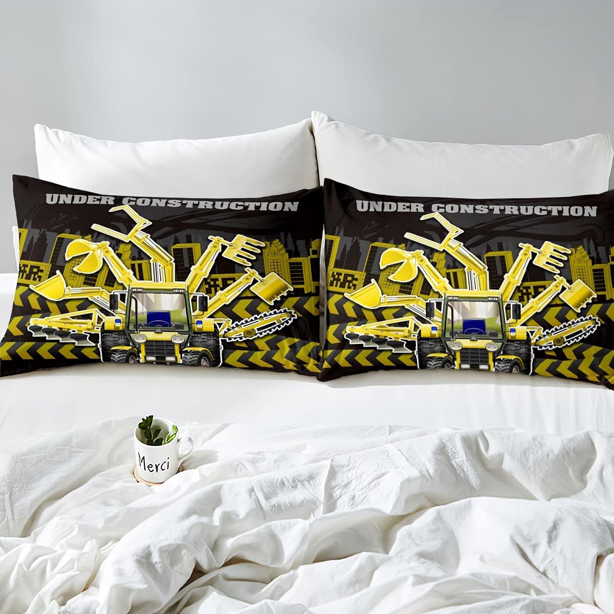 Loussiesd Under Construction Bedding Set Boys Cute Vehicles Bed Sheet Set Kids Cartoon Machinery Cars Fitted Sheet & Pillow Sham Set Child Nursery Bulldozer Crane Bed Cover No Flat Sheet Single Size