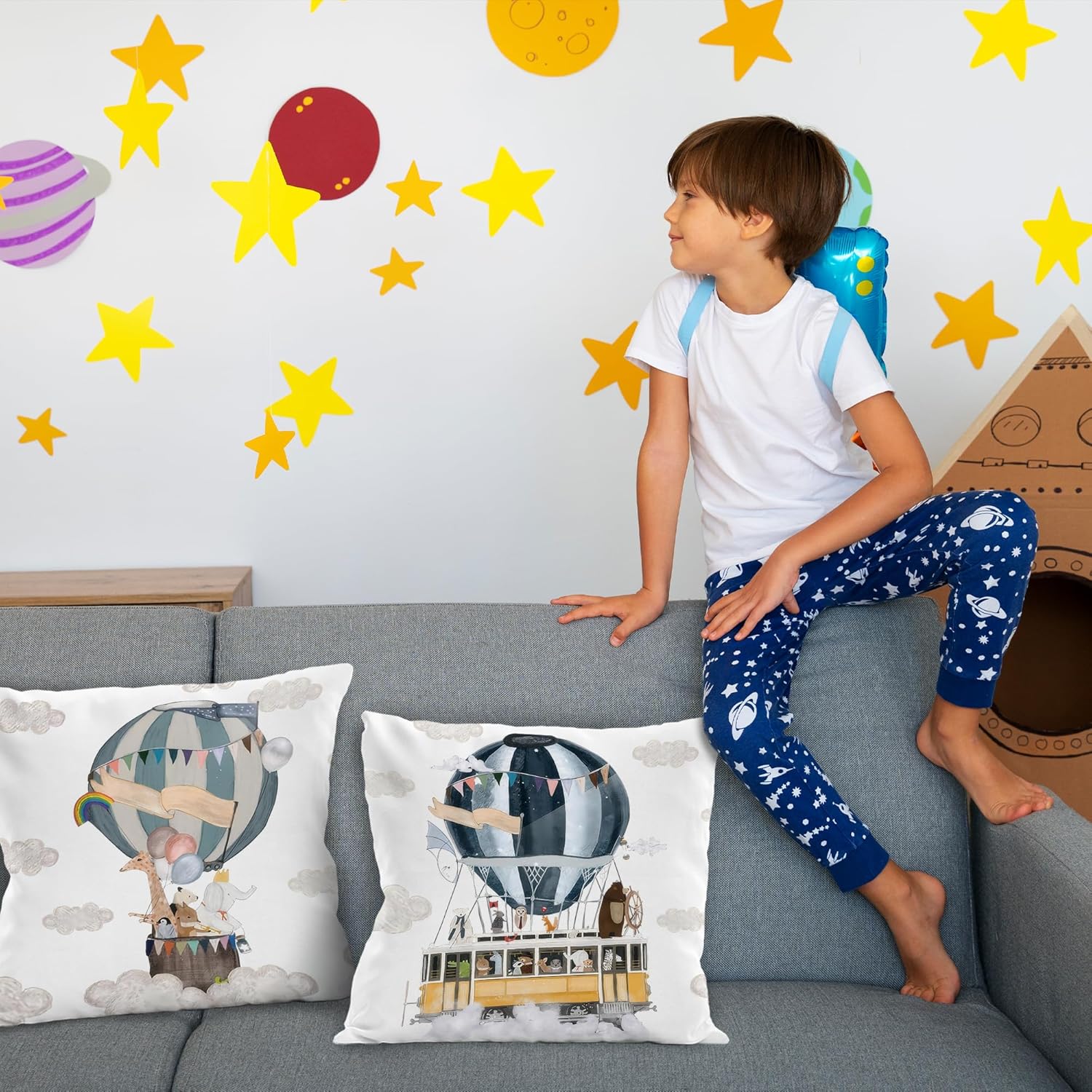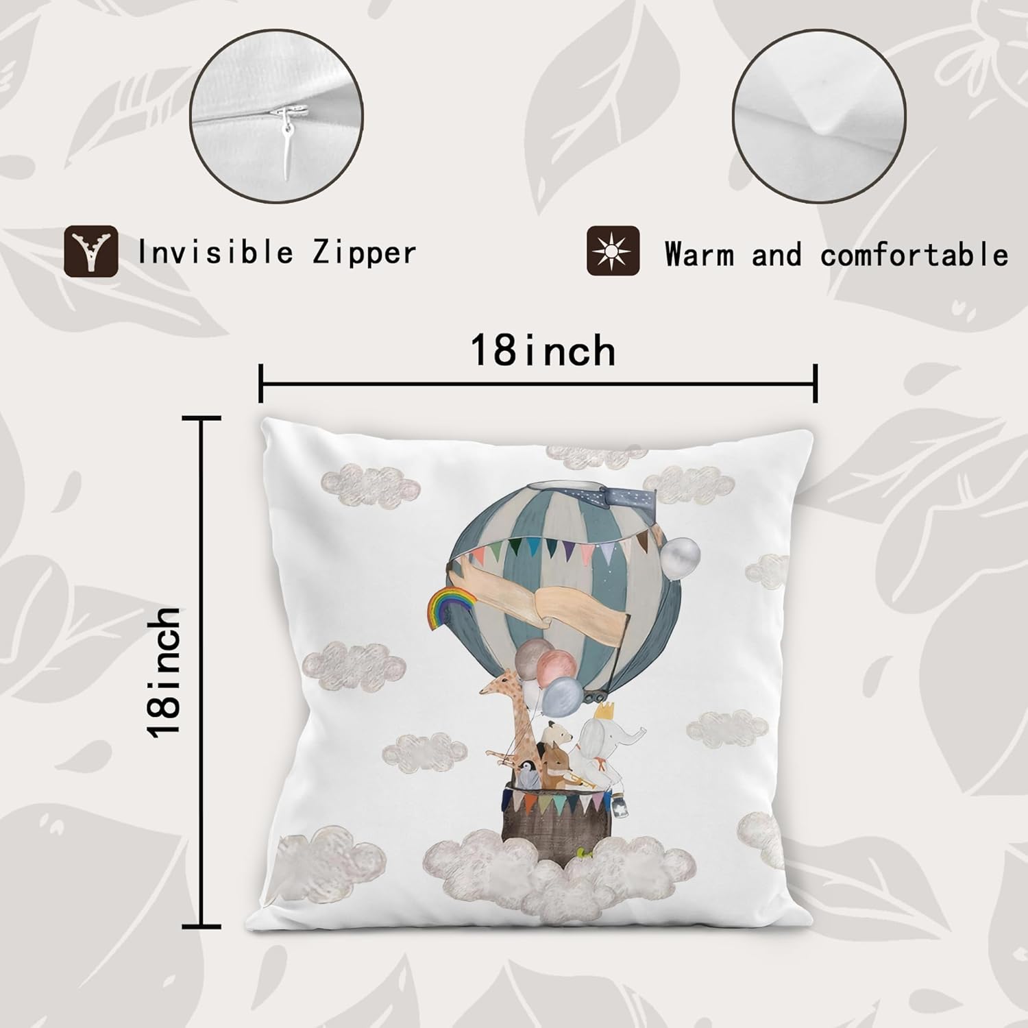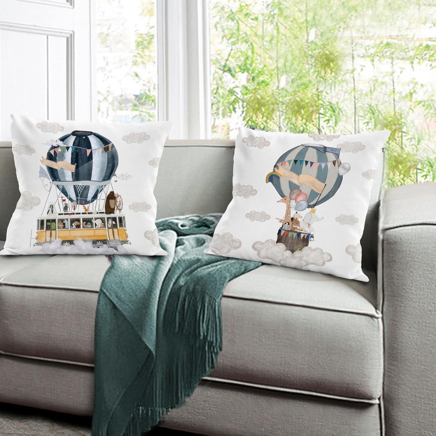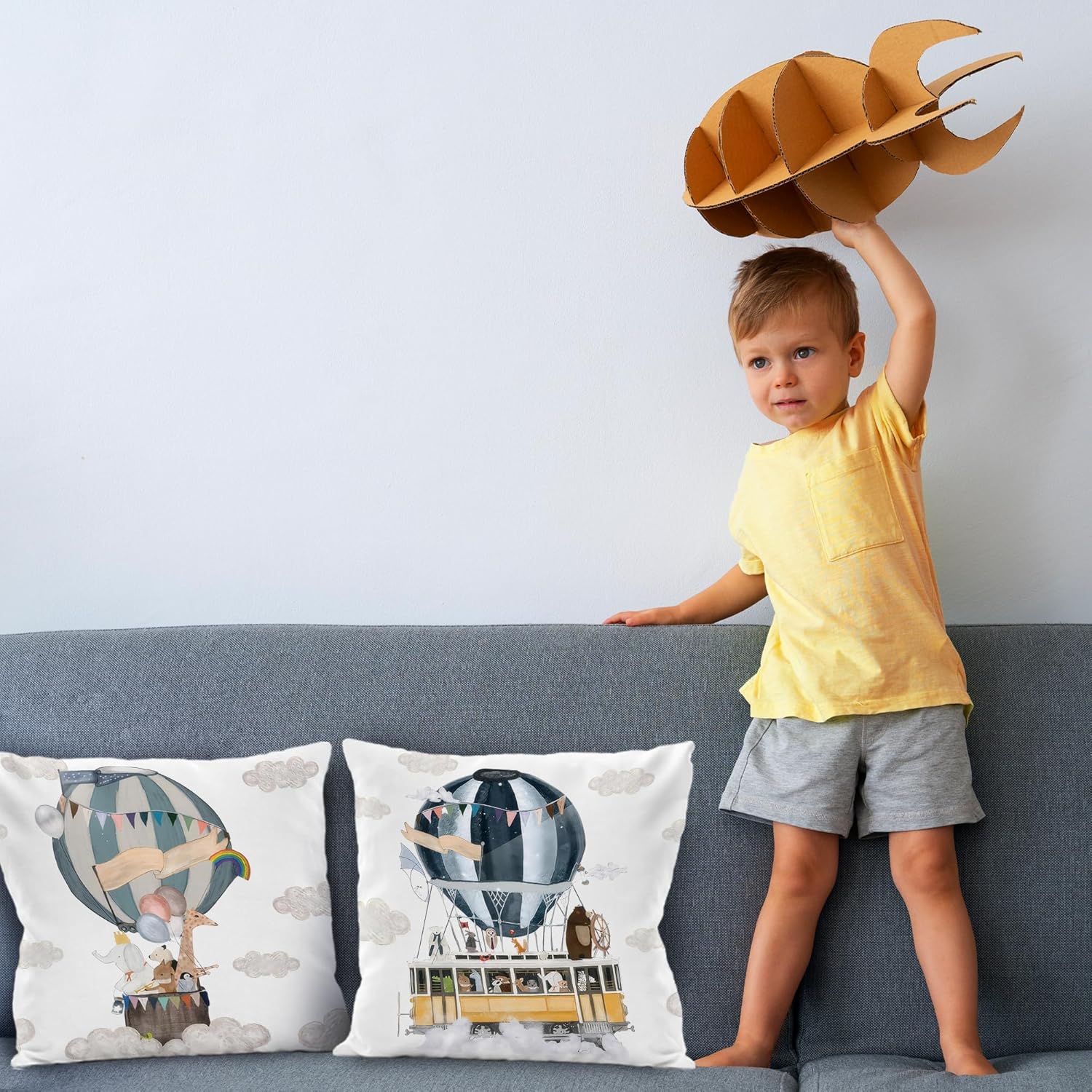 LUVADIAN hot air Balloon Decor Pillow Covers 18×18 Set of 2 – Woodland Nursery Decor, Kids Room Decor for Girls Boys, Kids Playroom Decor, hot air Balloon Pillow Covers, Kids Decorative Pillow