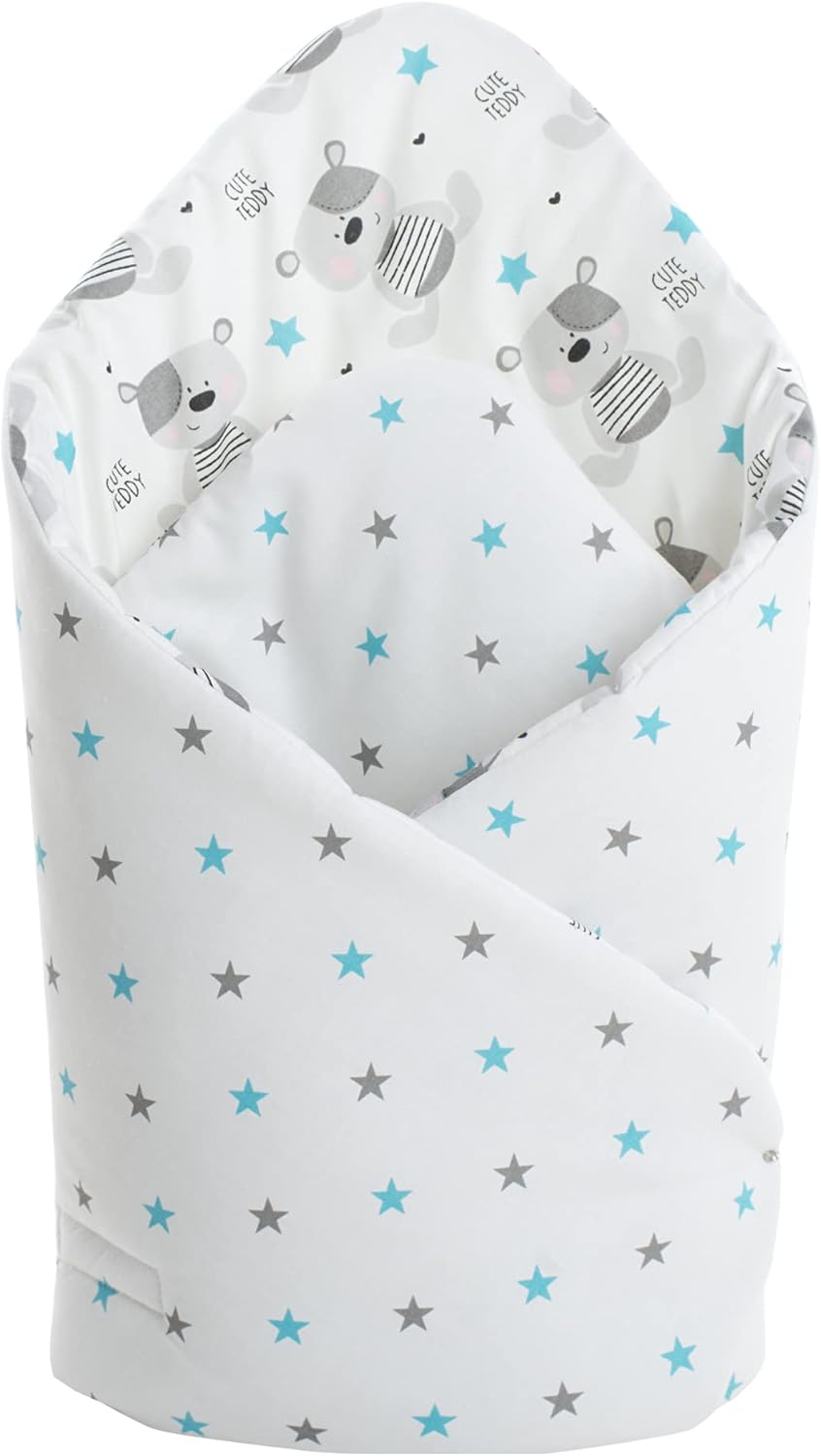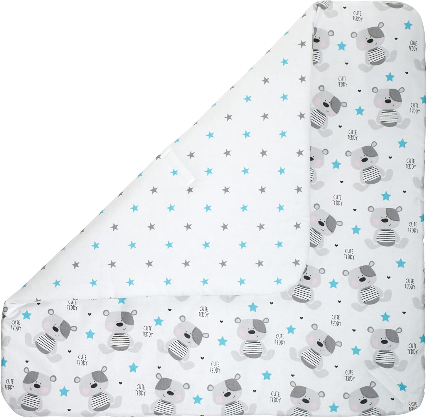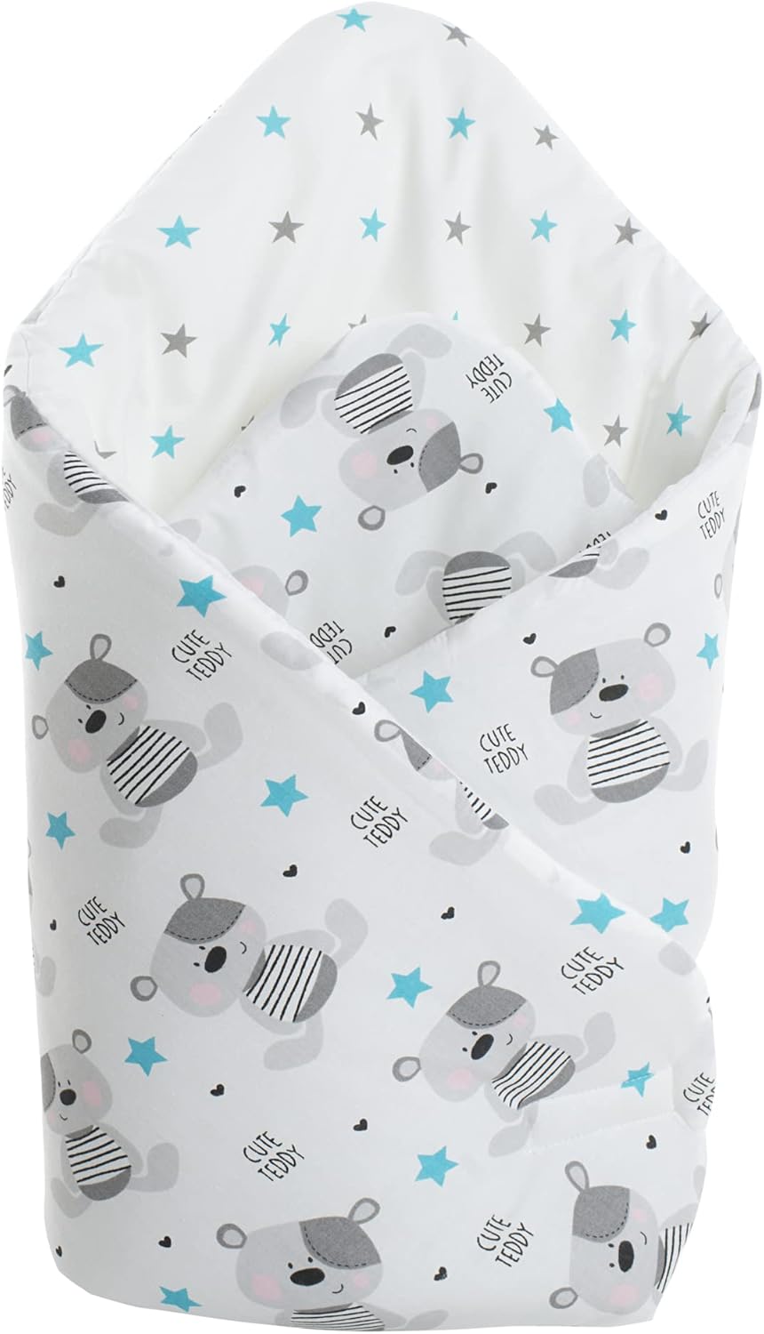 Medi Partners Swaddling Blanket Pillow 100% Cotton 75x75cm Sleeping Bag Double Sided Soft All Year Round Multifunctional Anti-Allergic Babies (Blue Teddy)