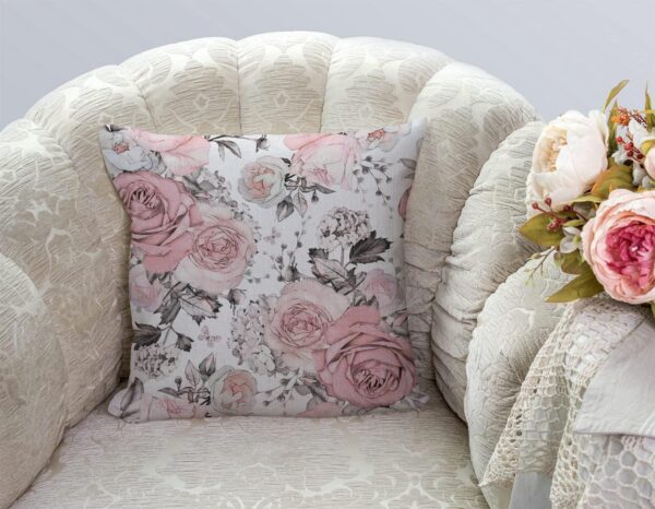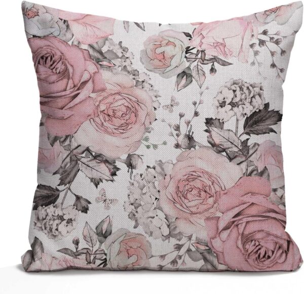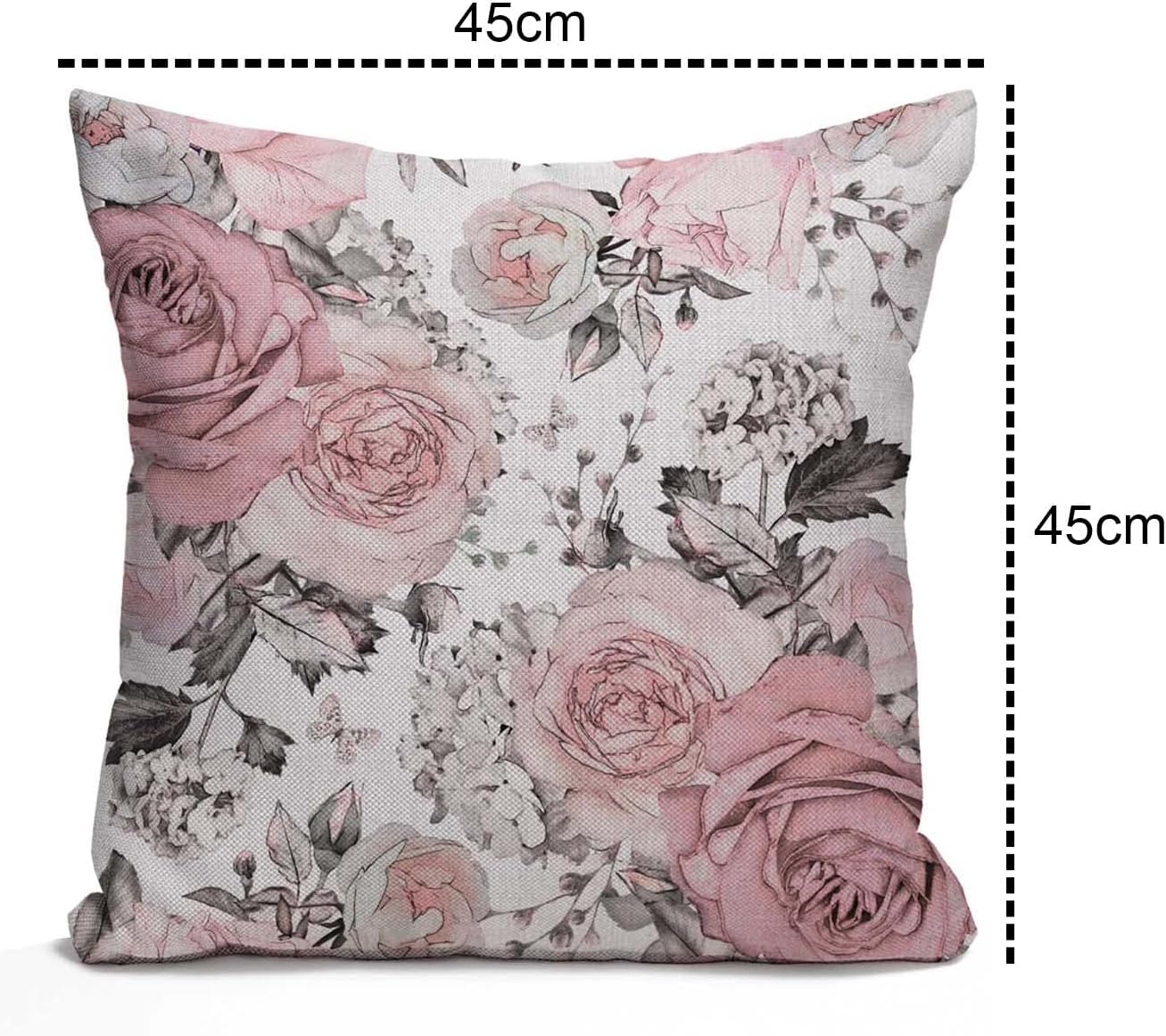 Tomda Pink Flowers and Leaves Cushion Cover, Watercolor Floral Pattern Pillow Cover, Flower Rose Burlap Throw Pillow Case Couch Sofa Decorative Square 45cmx45cm 18×18 inches