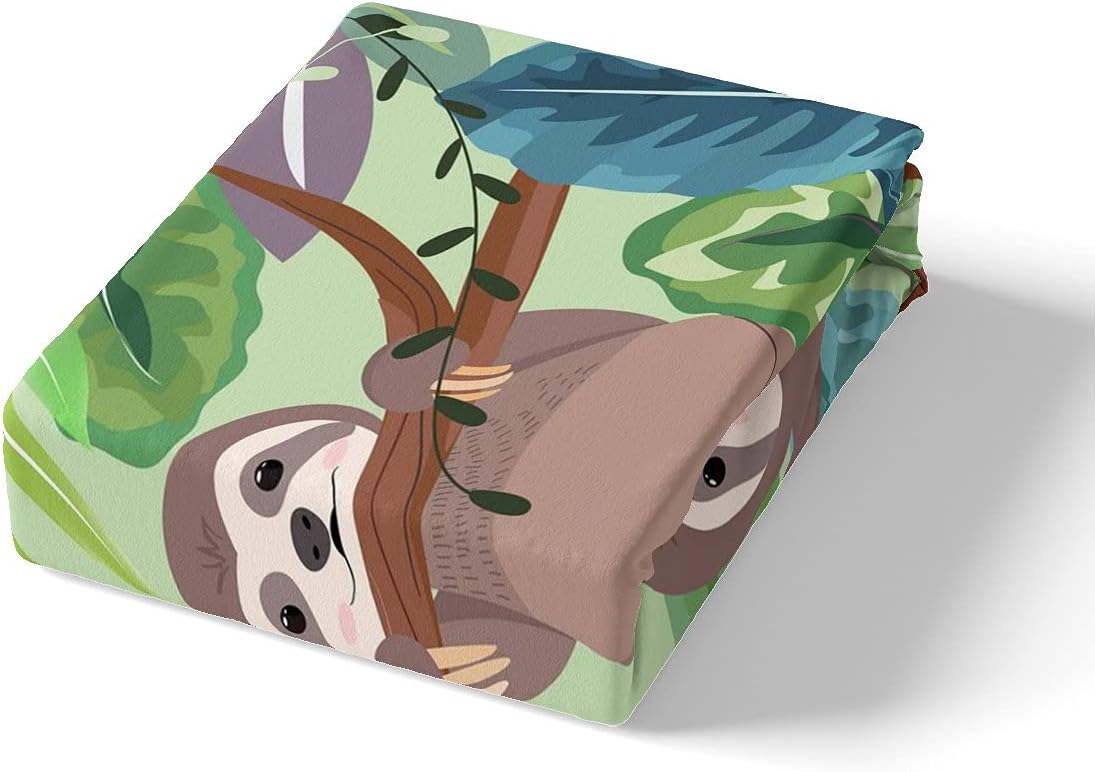Tropical Leaves Duvet Cover Kids Cartoon Sloth Bedding Set Nursery Cute Animal Bedding & Linen for Boys Girls Children Teens Funny Sloths Bedspread Cover Double Size With 2 Pillow Case