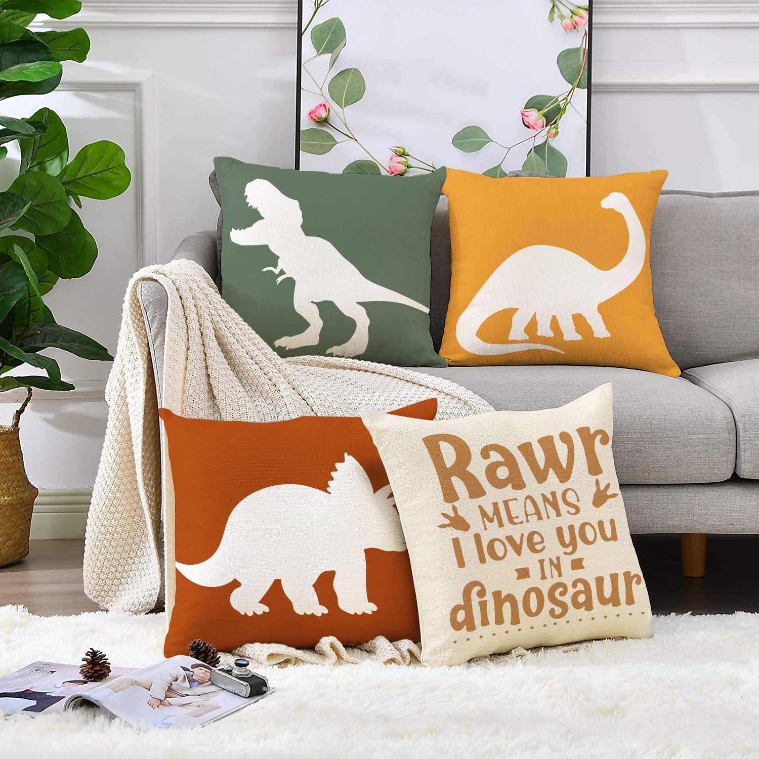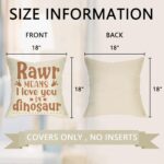 Ussap Dinosaur Rawr Means I Love You Home Decorative Throw Pillow Cover Set of 4, Inspirational Quote Cushion Case 18×18 for Boy Kid, Bedroom Nursery Sofa Couch Decor Dino Baby Shower Decoration Gifts