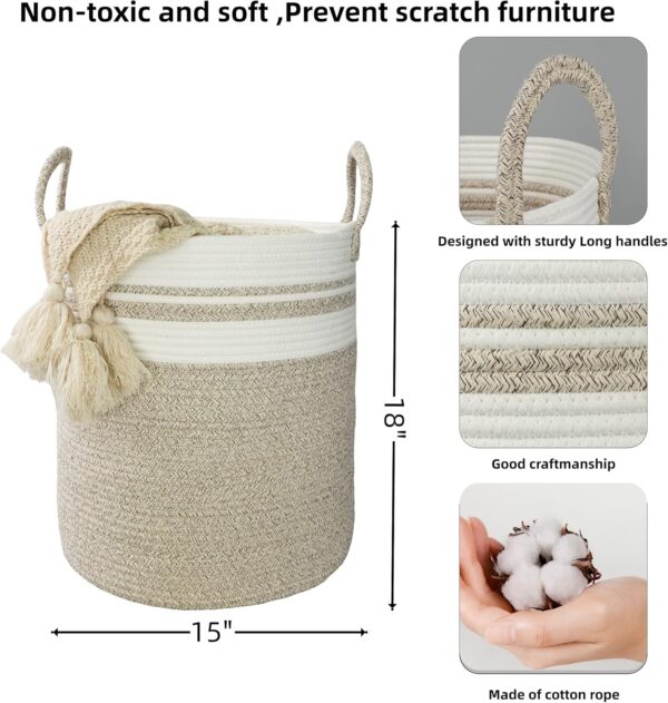XUANGUO Cotton Rope Laundry Basket Hamper for Clothes Woven Storage Basket for Living Room Bedroom Boho Tall Rope Baskets for Blanket Toys Pillow Towels Baby Nursery Hamper Bin Large brown and white