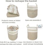 Note: Laundry basket comes folded and may have creases. Fully filling the laundry hamper with towels or clothes and waiting for 1-2 days will help reshape the laundry basket. You can also use steam or ironing to reshape the laundry basket. The rope hamper is machine washable. If machine washing the laundry hamper, please put it in a wash bag for delicate and air dry it.