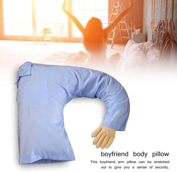 Description:Arm Pillow Boyfriend Arm-Shaped Pillow Arm Pillow Is Simple And Cute Suitable For Bedroom Living Room EtcFeatures:【High-quality materials】: 100% high-grade polyester anti-wrinkle outer pillowcase, elastic rolling nano ocean particle full solid core pillow material, high-grade fleece inner sleeve, body shaping, durable and thick, anti-mite and insect-proof.【Lovely appearance】: This pillow is a boyfriend’s shoulder design, soft and cute, when you pillow on it, you feel very safe and give you a perfect experience.【Comfortable and easy to use】: the material of the pillowcase is skin-friendly and breathable, the soft and unique professional body drape design, the precise head fit arc design, and the unique pillow wrist design enhances the fit of the pillow to the body. 【Home decoration】: The pillow is small and convenient, saving space, no matter where it is placed, it will not take up space, and it will be a perfect home decoration. Putting it on the sofa not only makes the living room more delicate, but also you can lie on it all the time and enjoy life.【The perfect gift】: a toy for your girlfriend, a sofa pillow or a chair cushion. This is the perfect gift for your family and female friends. This pillow is warm and attentive as a gift. Your friends and family will love it very much.Specification:Material: Cotton. Weight: 430g. Size: about 55x43x13cm. Color: sky blue.Packing: 1x one-arm boyfriend pillow.Note:Can be washed, do not machine wash, air dry naturally, do not expose to the sun. Due to different monitors and lighting effects, the actual color of this item may be slightly different from the color shown on the picture. Thank you!Due to manual measurement, please allow a measurement deviation of 1-3cm.If you have any questions, you can contact us at any time and we will reply to you in time.