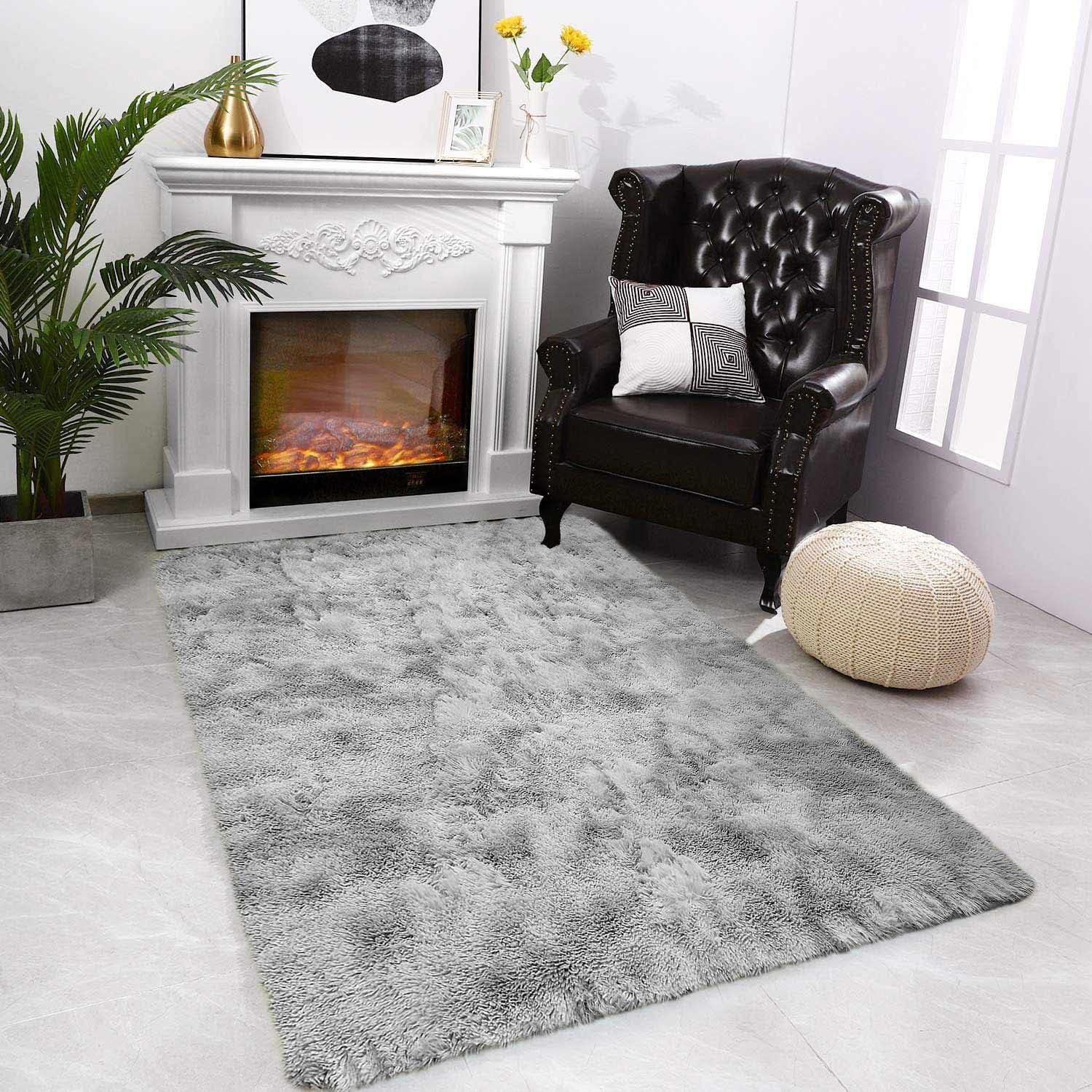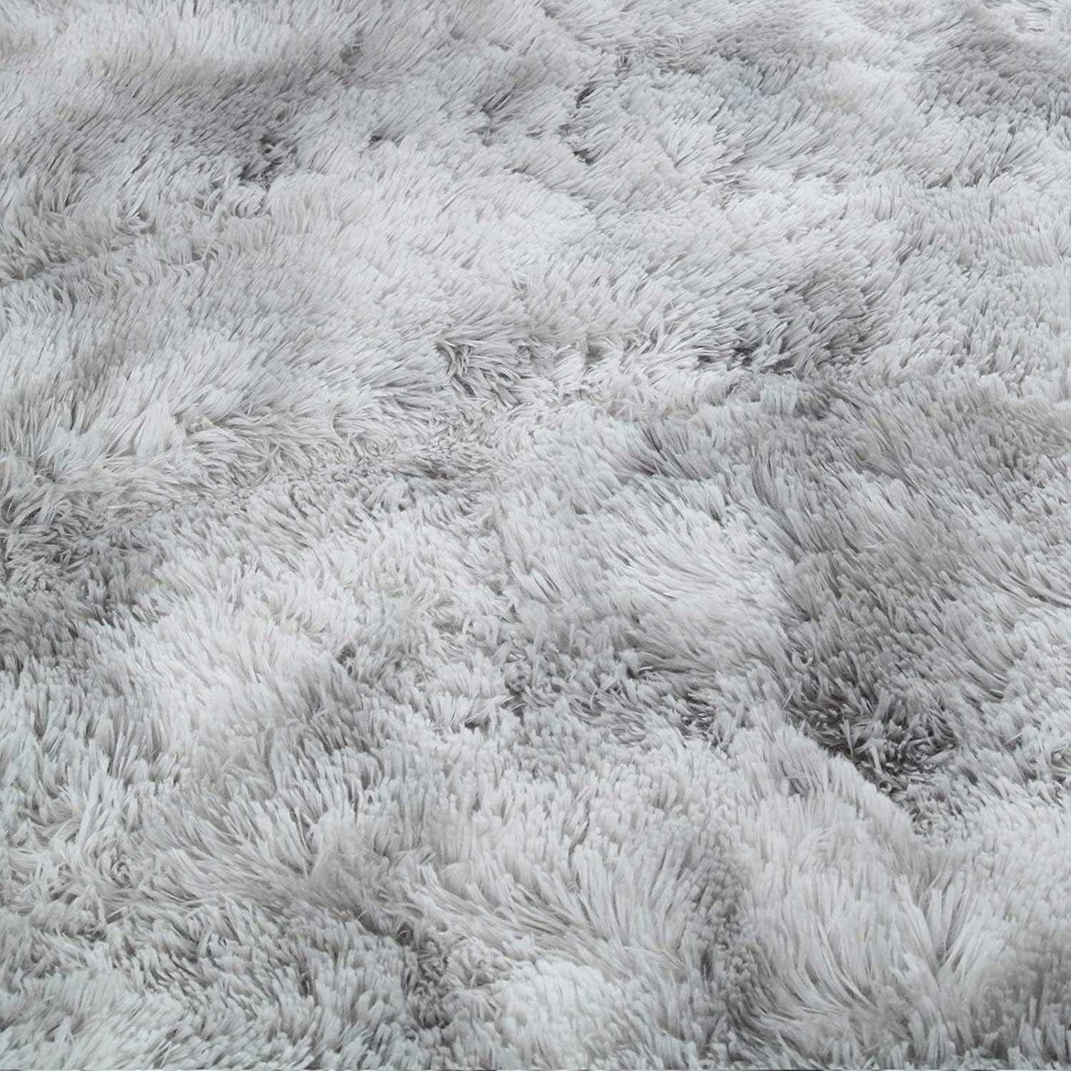 Area Rugs Soft Fluffy Shaggy Rugs Living Room Grey Large Modern Plush Rug High Pile Non-Slip Bedroom Carpet Floor Mat Nursery Bedside Rug (Grey White, 80 x 120 cm)