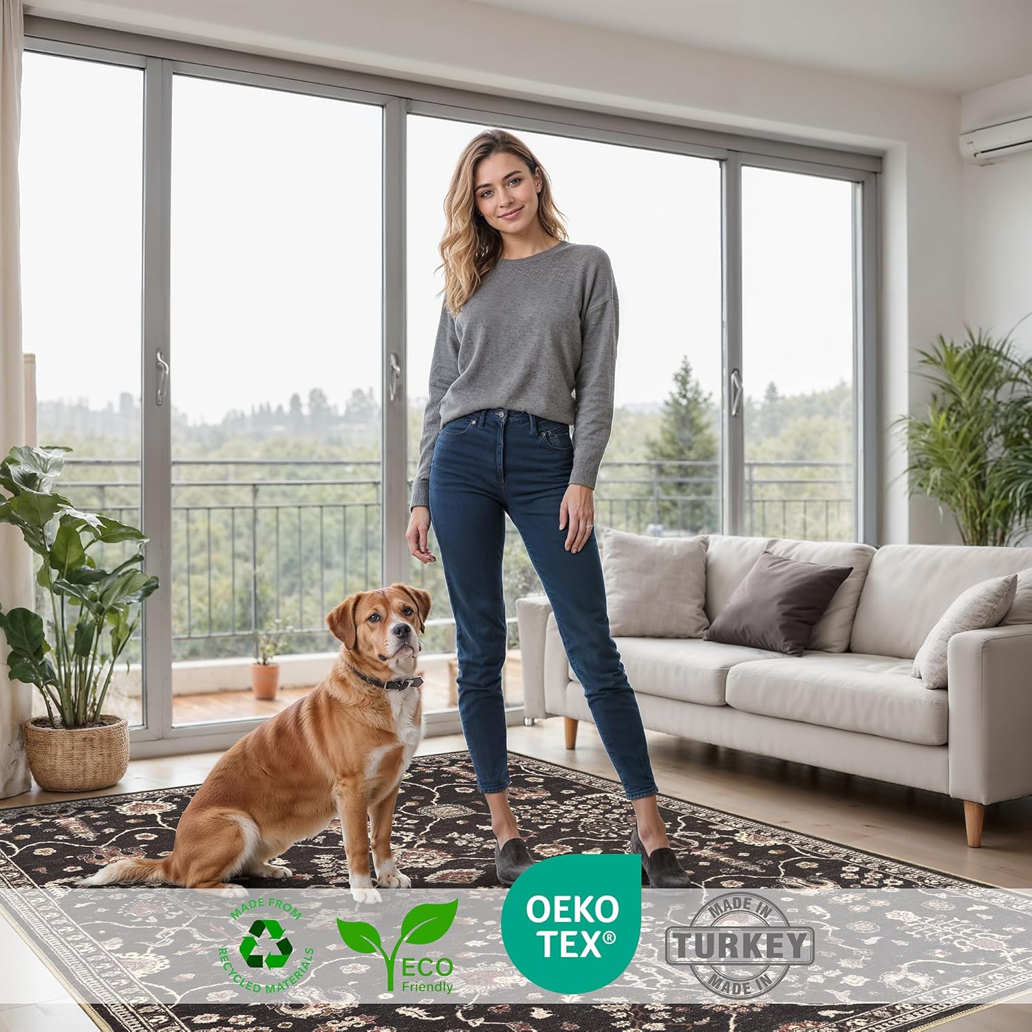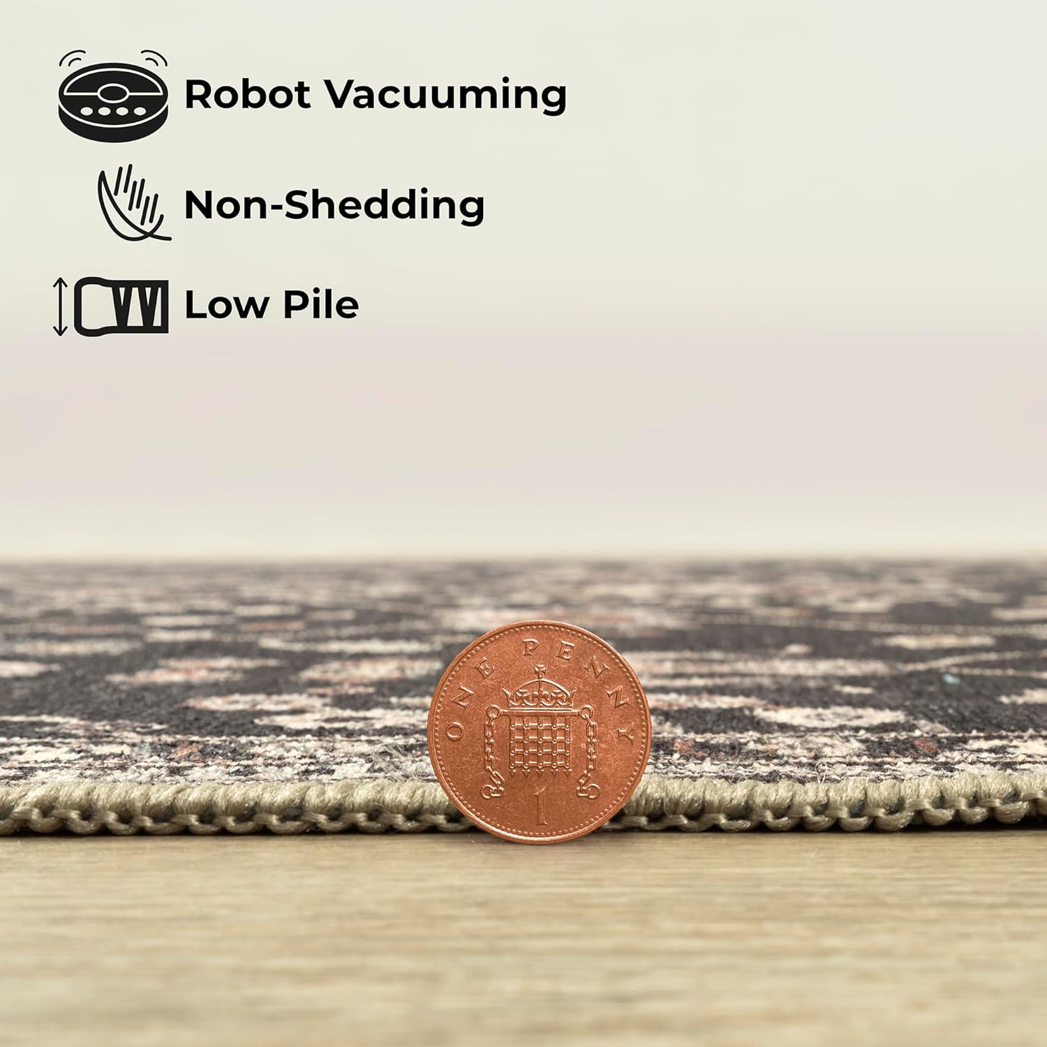 Arty Rugs Machine Washable Rug, 200x290cm, 75% Recycled Cotton, Short Pile, Non-Slip Backing, Non-Shedding, Area Rugs for Living Room, Bedroom, Kitchen, Hallway, Office, Charcoal Black