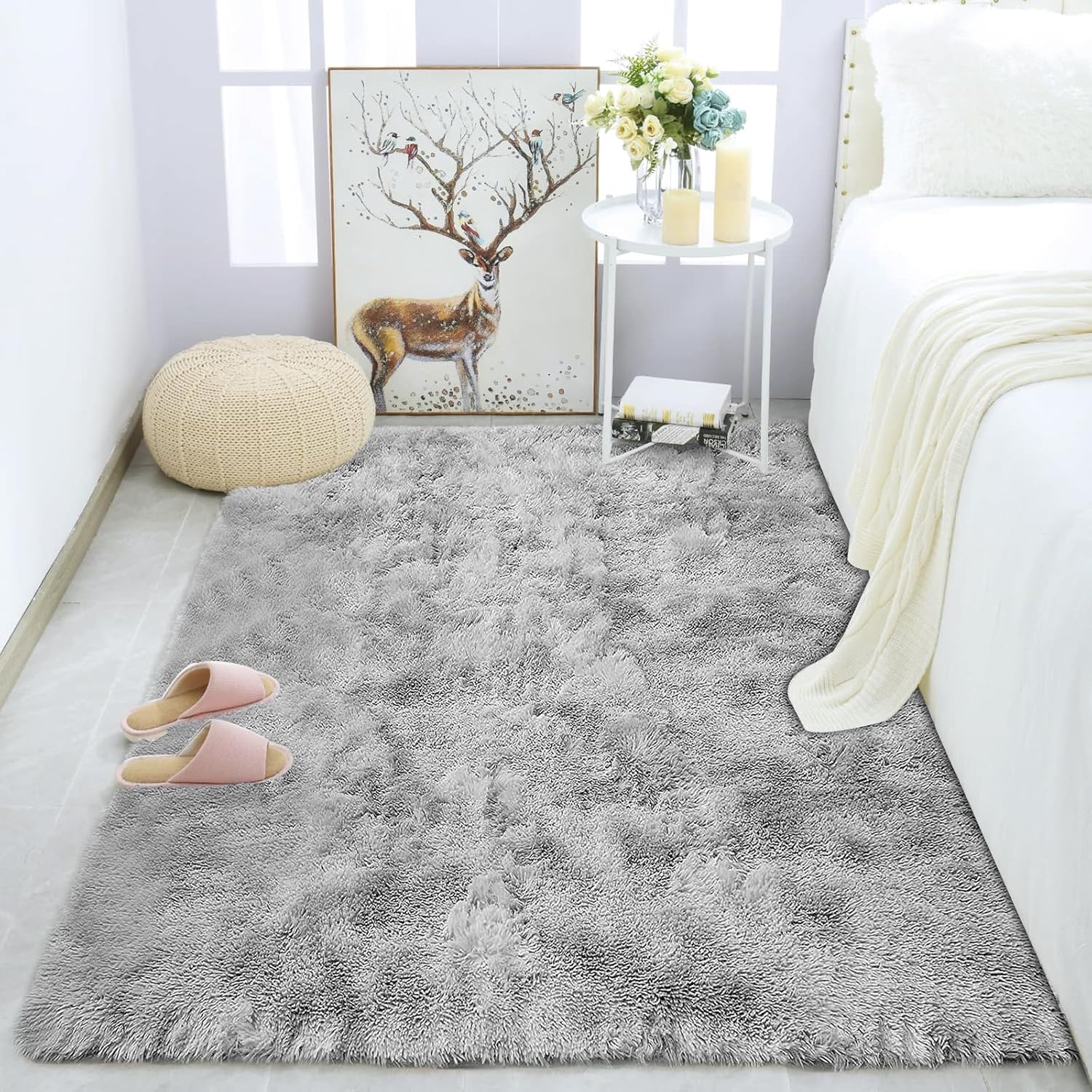 【Non-Slip Rug】The backing of our shag rug features durable grip dots, which can prevent slipping and help to hold in place on most floors, ideal for everyday indoor high traffic areas of your home from kid or pet activity. Please always keep the underside of the area rugs dry.
