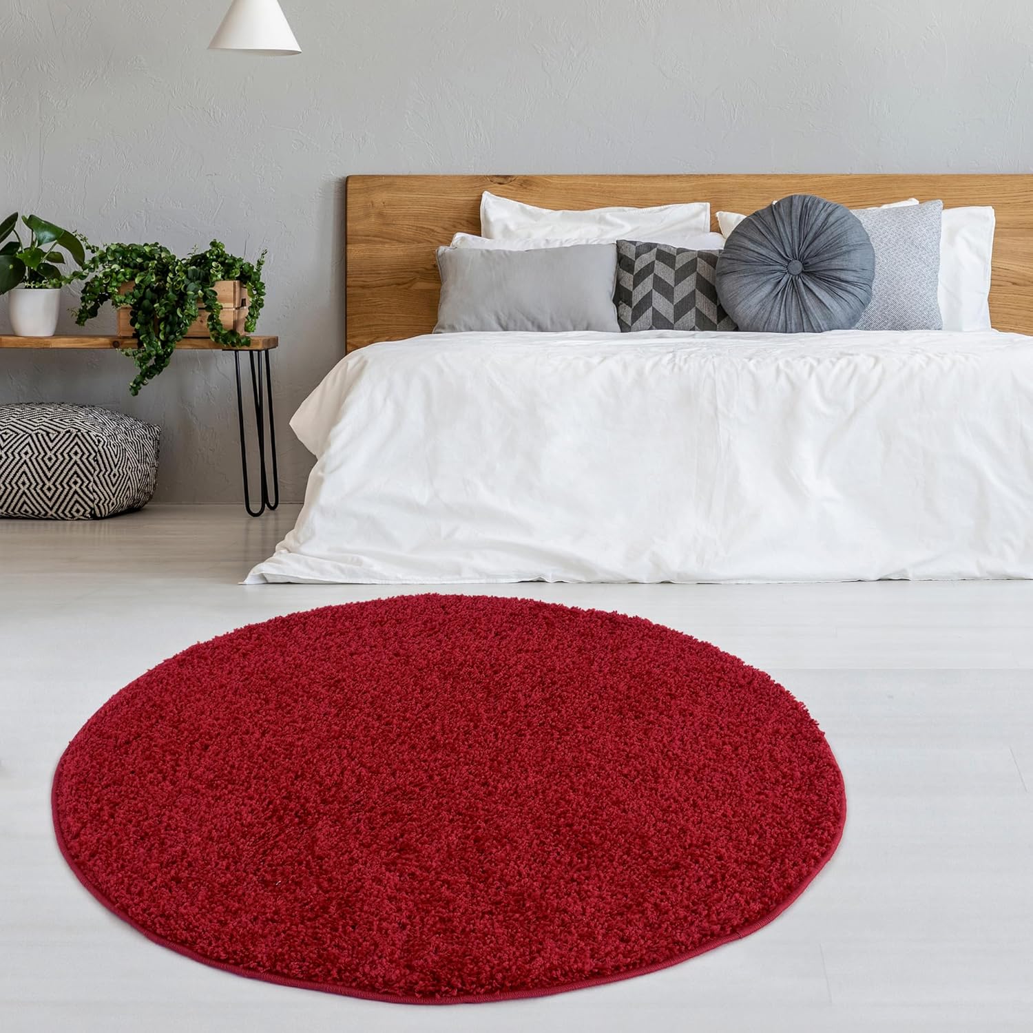 BORING PANDA Living Room Rug – Cosy, Soft and Easy-to-Clean Area Rugs for Bedrooms and Kitchens, (Red, 120 cm Round)