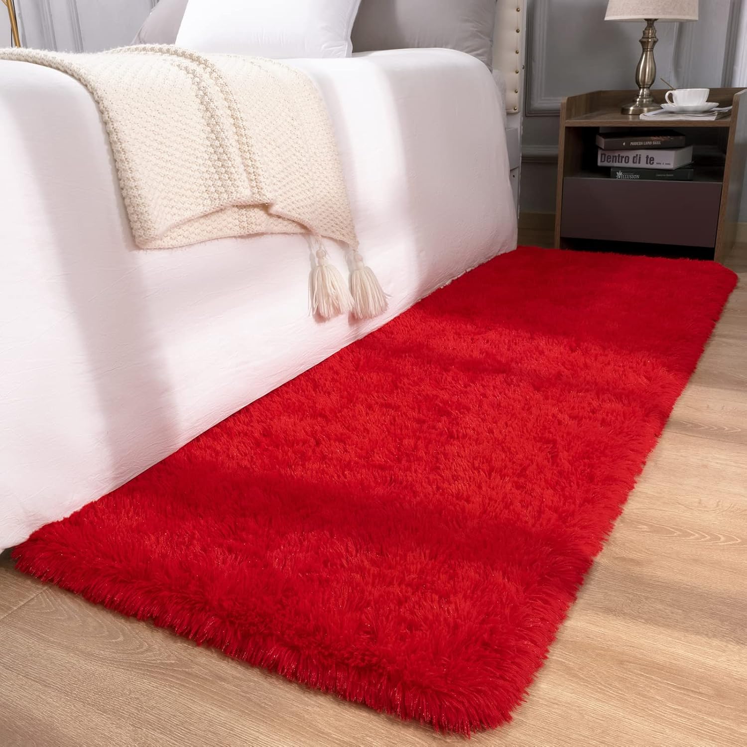 DETUM Red Rug 2×6 Feet – Fluffy Red Runner Rugs for Bedroom Shaggy 2′ X 6′ Living Room Rug Soft Rugs for Kids Room Non-Slip Nursery Office Dorm Washable Carpets Home Decor