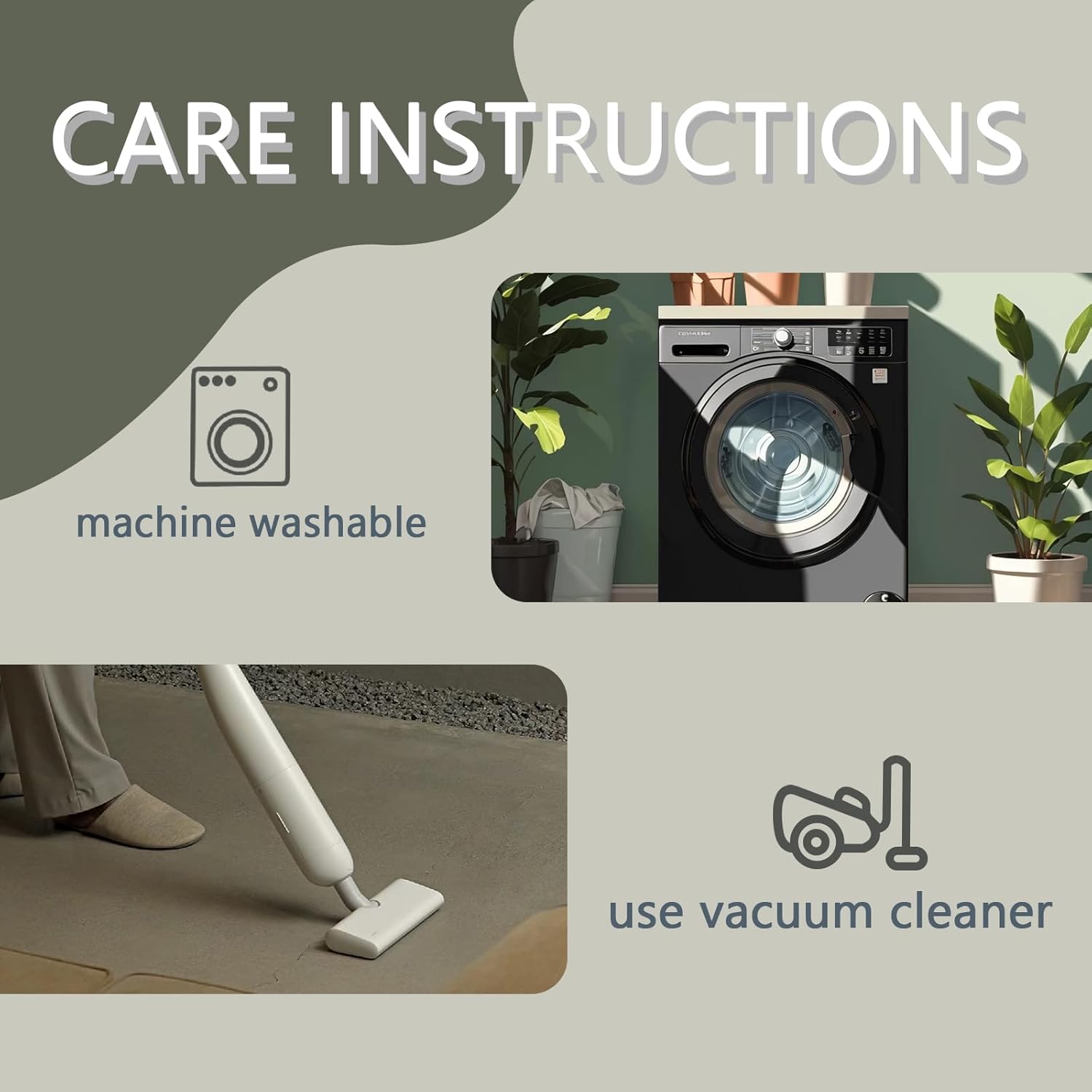 Washable Rugs – Simply vacuum with a handheld vacuum cleaner every day. For a deep clean, add some mild detergent and gently wash the floor carpet with a machine or by hand. Then choose a ventilated place and spread the center rug out or hang to dry naturally