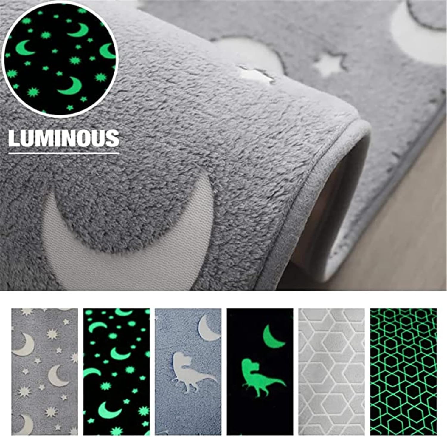 Tips:If you want to get a better luminous effect, please illuminate the carpet with strong light in advance.The luminous effect can only last for a while.