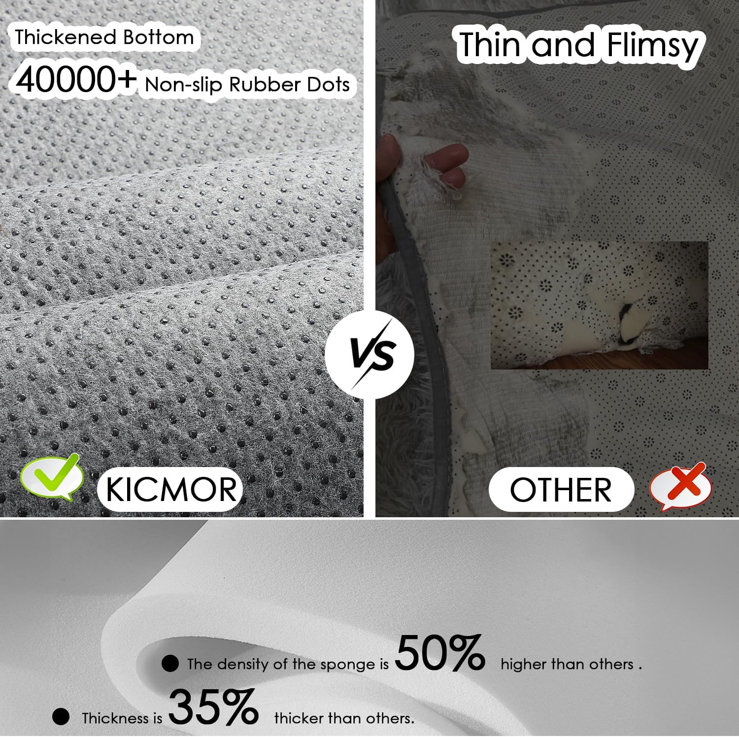 Non-slip Bottom — The thickened felt bottom with 40000+ high-density small and strong anti-slip dots, which can enhance the friction between the shag area rug and the floor to prevent it from sliding. The tight weaving process ensures that the floor rug is not easy to fall apart, and the fluffy carpet back is not easy to damage the floor.