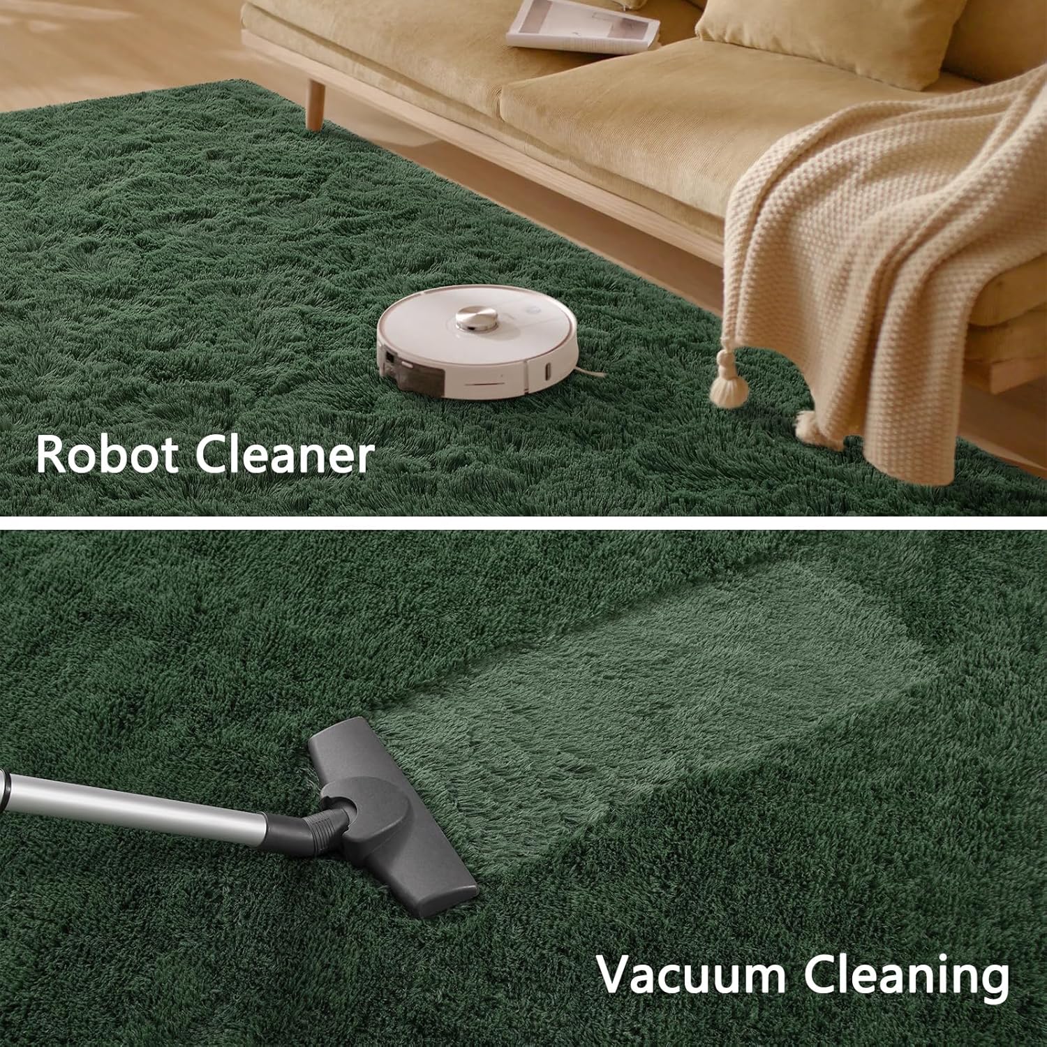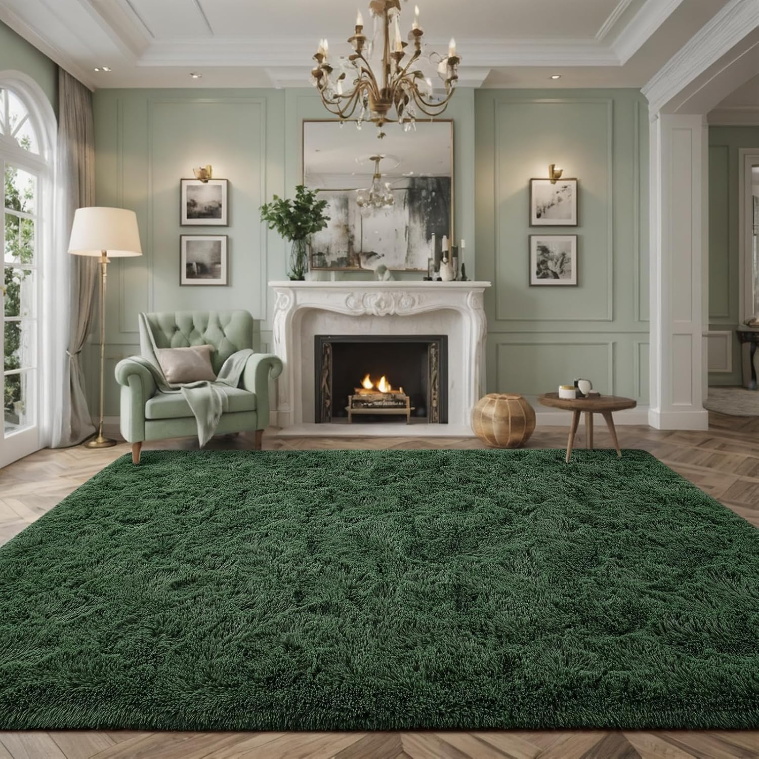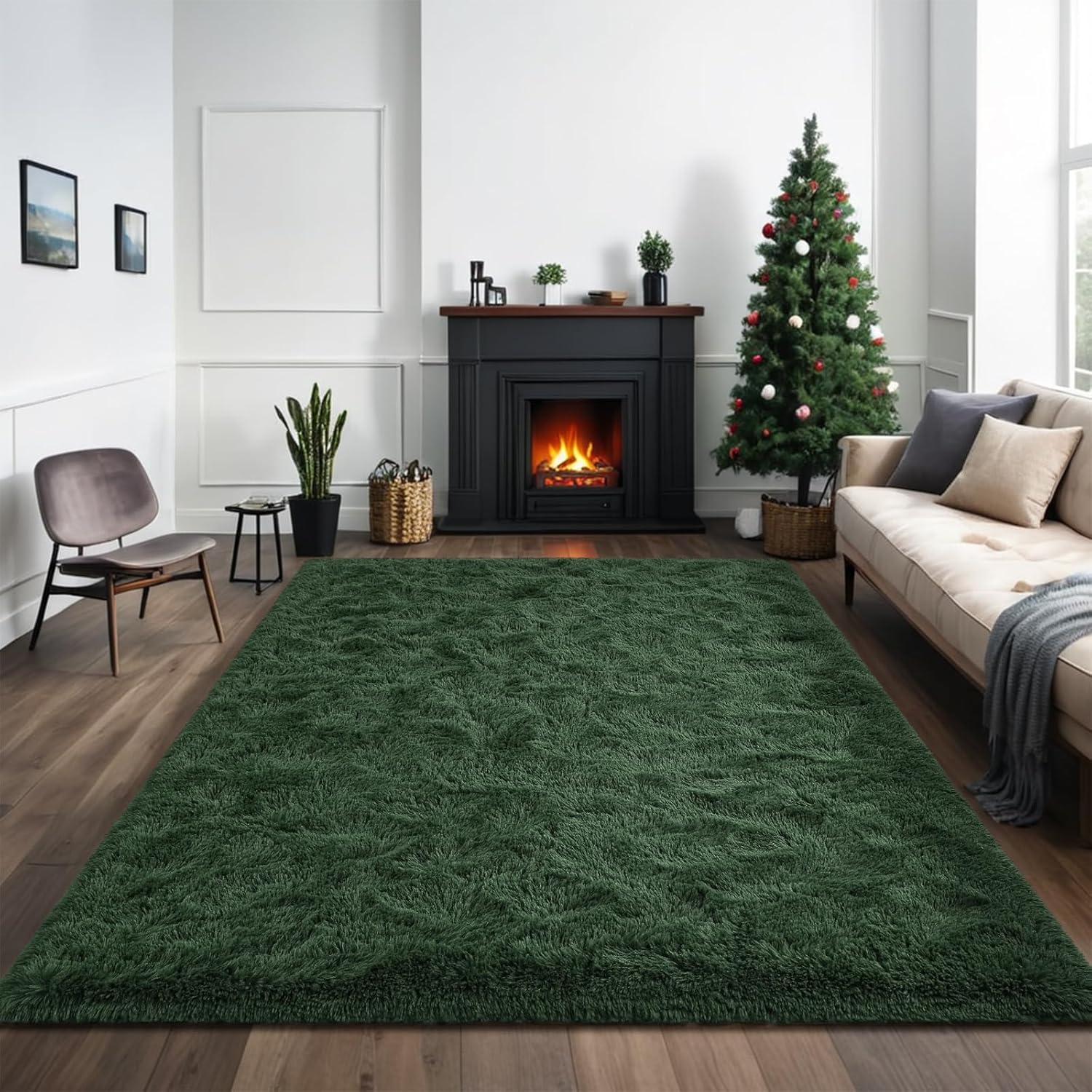 Larhom Fluffy Area Rugs for Living Room Bedroom, 4×6 Dark Green Ultra Soft Plush Fuzzy Rug, Anti-Skid Indoor Carpet Nursery Rugs for Kids Room Home Decor, High Pile, Non-Shedding