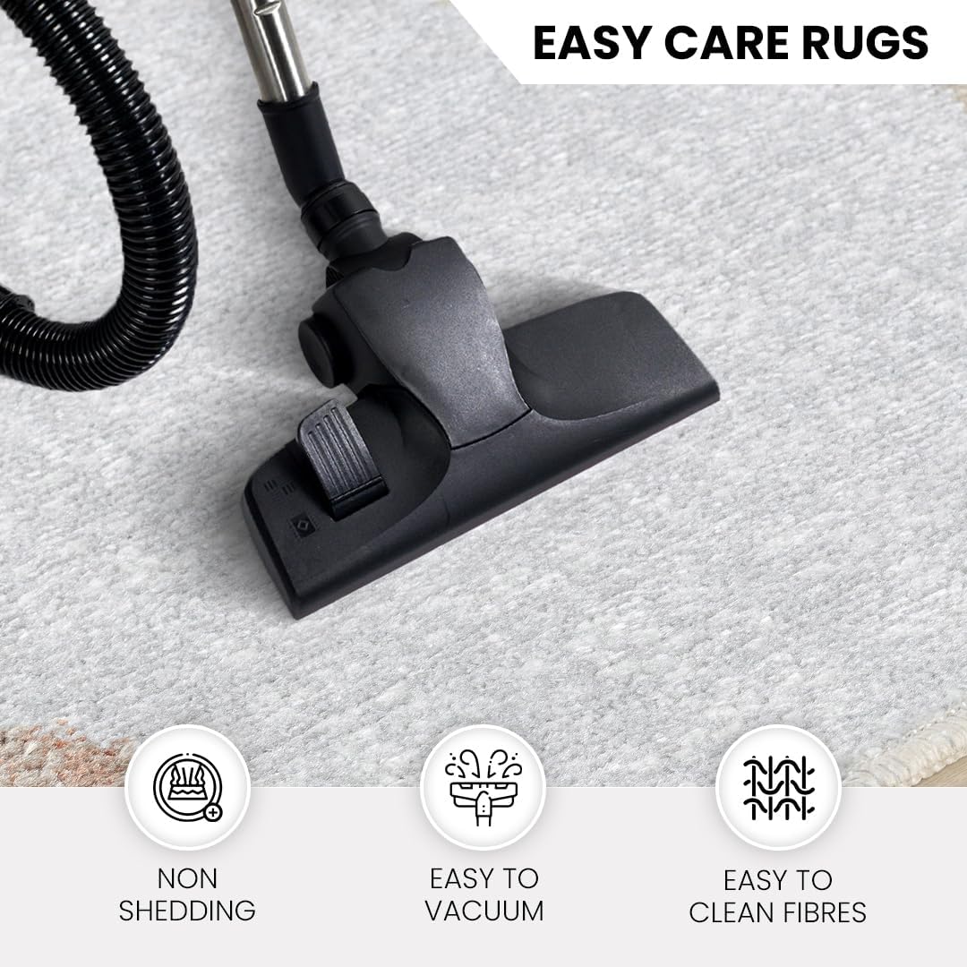 Strong and durable soft area rugs in a range of small, medium, large, round rugs and runner rug sizes, machine woven in polyester and machine washable at 30 degree Celcius, with a virtually non-shedding 3.5mm thick pile; durable, moisture, bleach and stain resistant