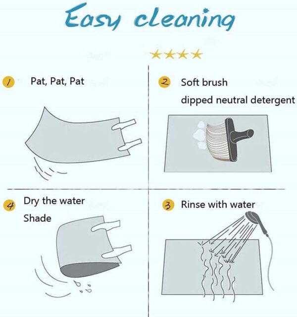 Easy to clean, can be directly washed by washing machine or soft hand, wear and lasting, does not discolour and does not discolour, the back avoids direct sunlight.