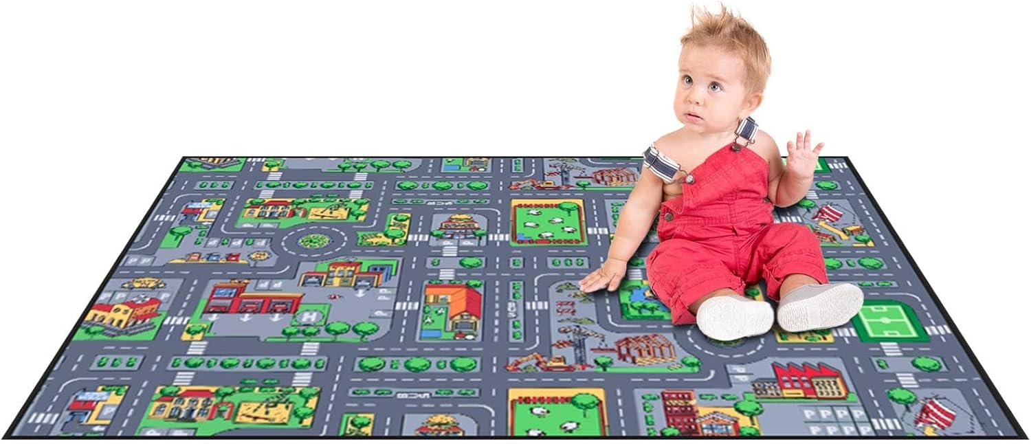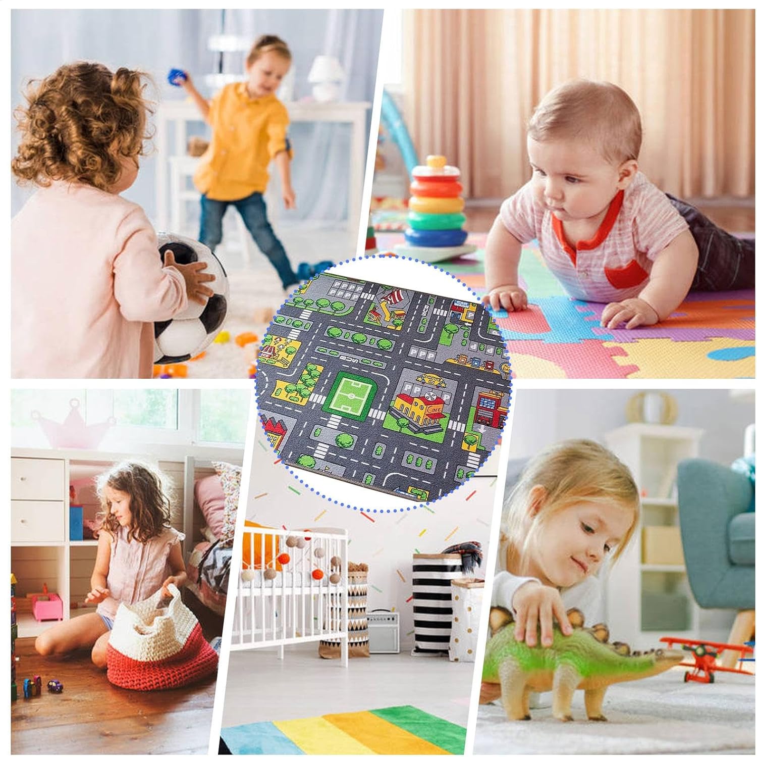 Nybhyjka Road Play Map City Car Vehicle Traffic Educational Learning & Fun Game Area Non Slip Boy & Girl Kids Rug Carpet Traffic Map Crawling Play Carpet Kids Baby Children Educational Road Traffic