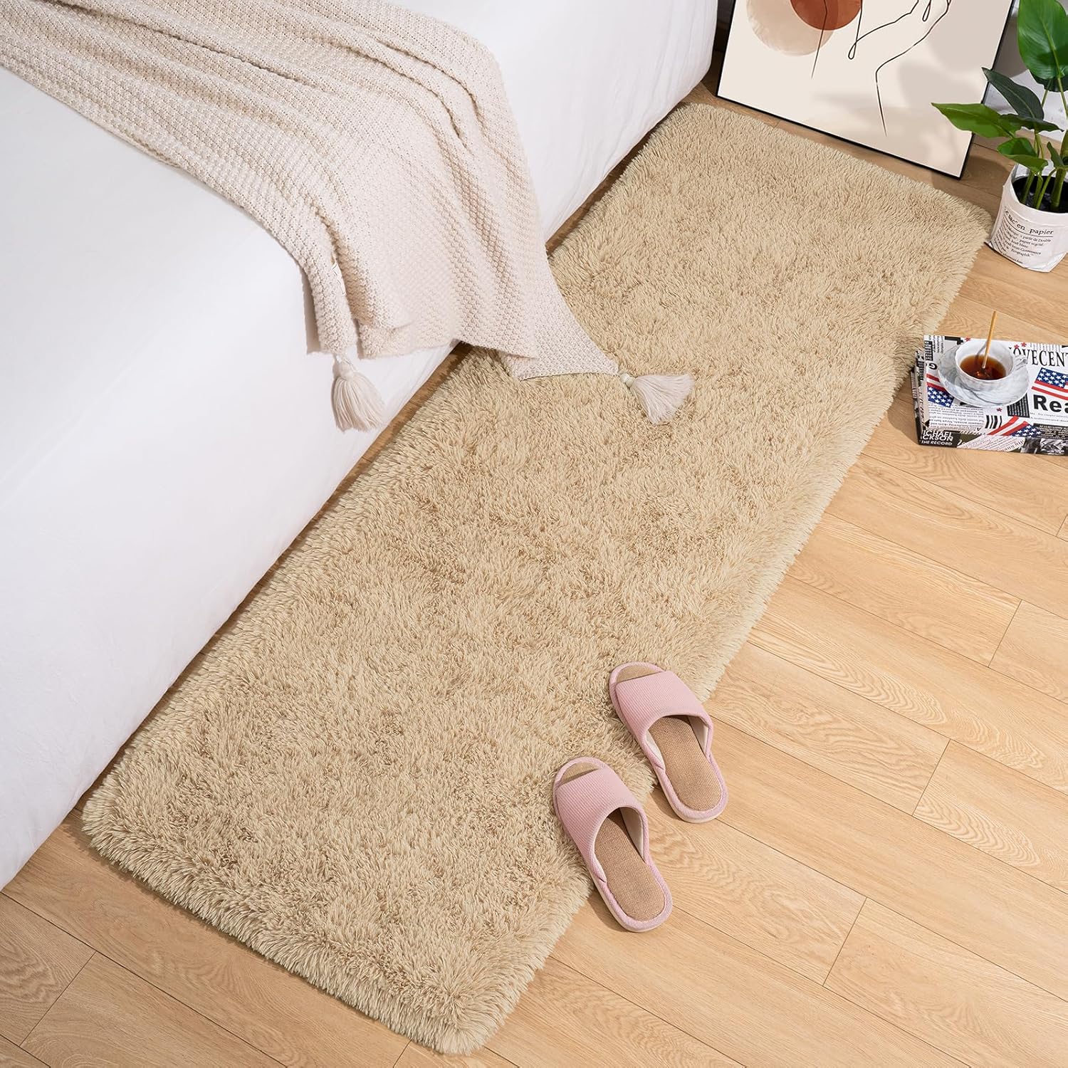 Przemy Fluffy Bedroom Rug 2 x 6 Ft Area Rugs for Living Room, Super Soft Shag Rug, Indoor Modern Fluffy Carpet Rugs for Bedroom Kids Girls Room Dorm Home Decor, Non-Slip Plush Nursery Rug, Beige