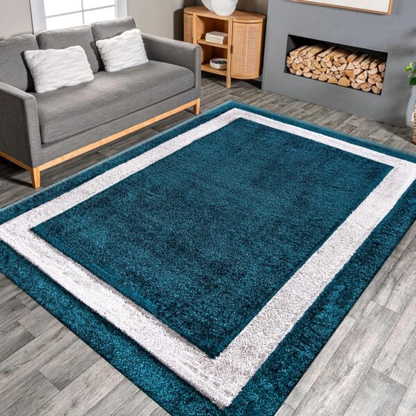 renoazul® Shaggy Washable High Pile Bordered Rug, 160 x 230 cm, Trani Zamarut, Shaggy Area Rug for Baby Room, Nursery or Kids Room