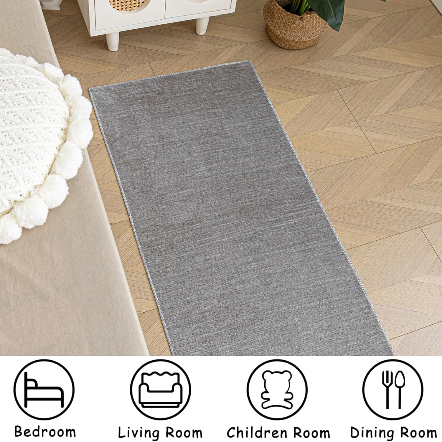 SAFE SECURE – Safety comes first with our anti-slip backing. It prevents the rug from sliding and provides a secure foothold even on smooth floors;This soft chenille short pile carpet is perfect for barefoot walking and children can safely play on it.