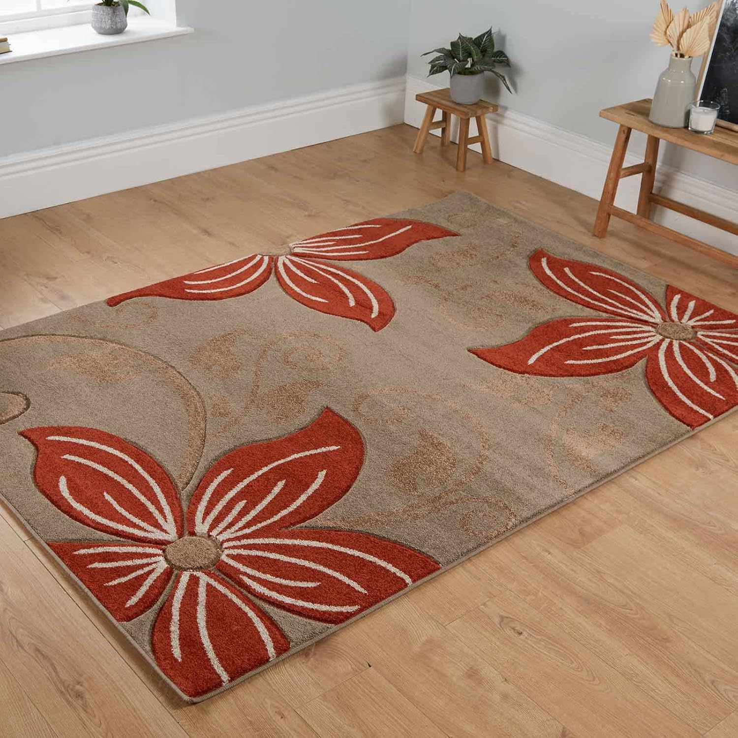 Rugs4sale Vogue Beige 1.4cm Thick Pile Modern Area Rug Living Room, Bedroom, Office And Home Decor l Ideal For Kids Room, Dining Hall, Indoor/Outdoor Carpet Mat (Beige/Terracotta-120x170cm)