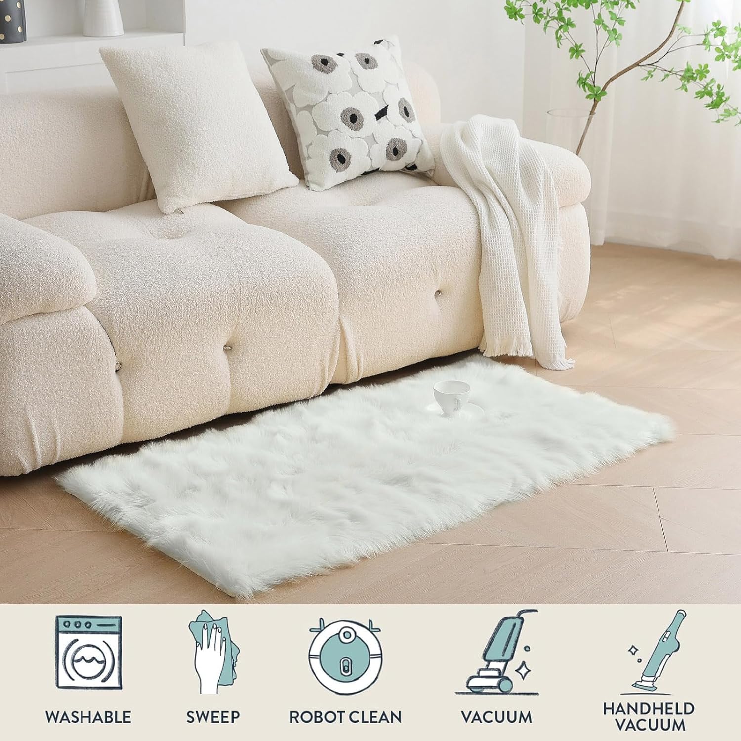 Sheepskin Rug,Soft Faux Fur Rug,White Rugs for Bedroom,Fluffy Rugs Living Room,Small High Pile Rug,Non-Slip Area Rugs,Thick Shaggy Bedroom Mat(White,40x60cm)