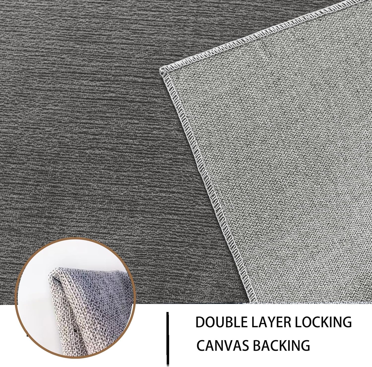 HIGHEST QUALITY -The surface of this short pile rug is made of STRIPED CHENILLE, the bottom of the thin carpet is made of canvas backing with TPR materials, which has excellent anti-slip effect and is not easy to fall off;the carpet is locked with a double layer and is not easy to take off the line and lose hair,which is sturdy and durable and easy to take care of.