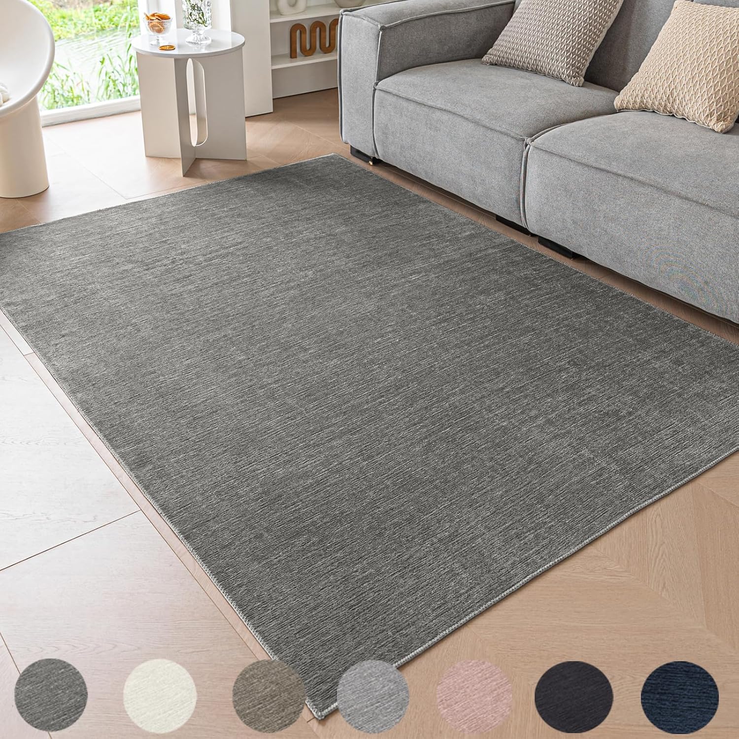 Short Pile Rug, Non-Slip Washable Rugs for Bedroom,Chenille Thin Carpet for Kids Room, Office, Lounge,Soft Area Rugs for Living Room (Dark Grey, 60×90cm)