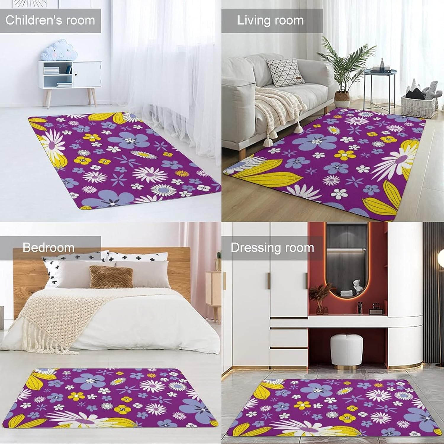 Soft Area Rugs for Bedroom Living Room Rugs Nursery Girls Carpets Kids Home Decor Rugs ,Purple Flower