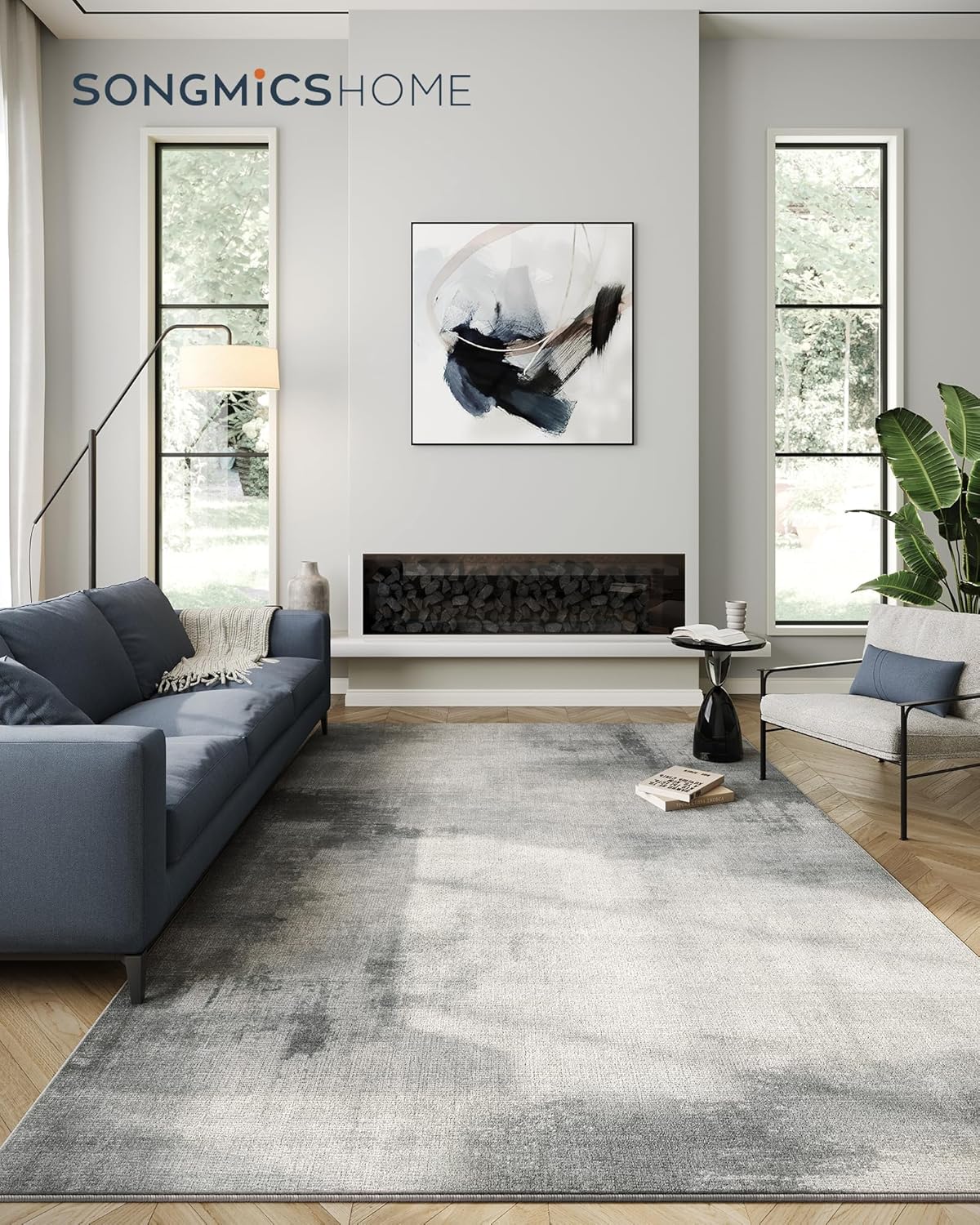 SONGMICS HOME Area Rug, 200 x 300 cm Rug for Living Room, Non-Slip Carpet, Modern Abstract Style, Home Decor, for Bedroom, Kitchen, Hallway, Dining Room, Machine Washable, Dove Grey TAR076G01