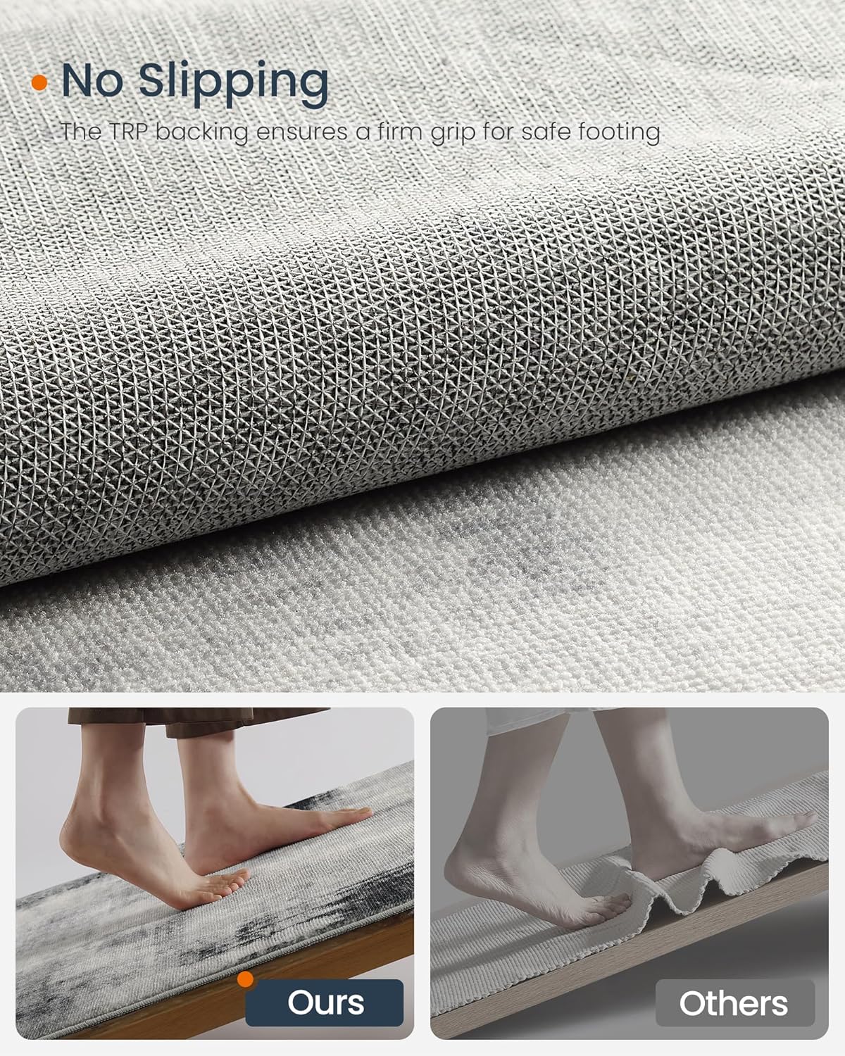 【NON-SLIP AND VERSATILE】The area rug’s backing utilises TPR for superior anti-slip performance, making it a perfect fit for various floor types, including hardwood, tiles, and more