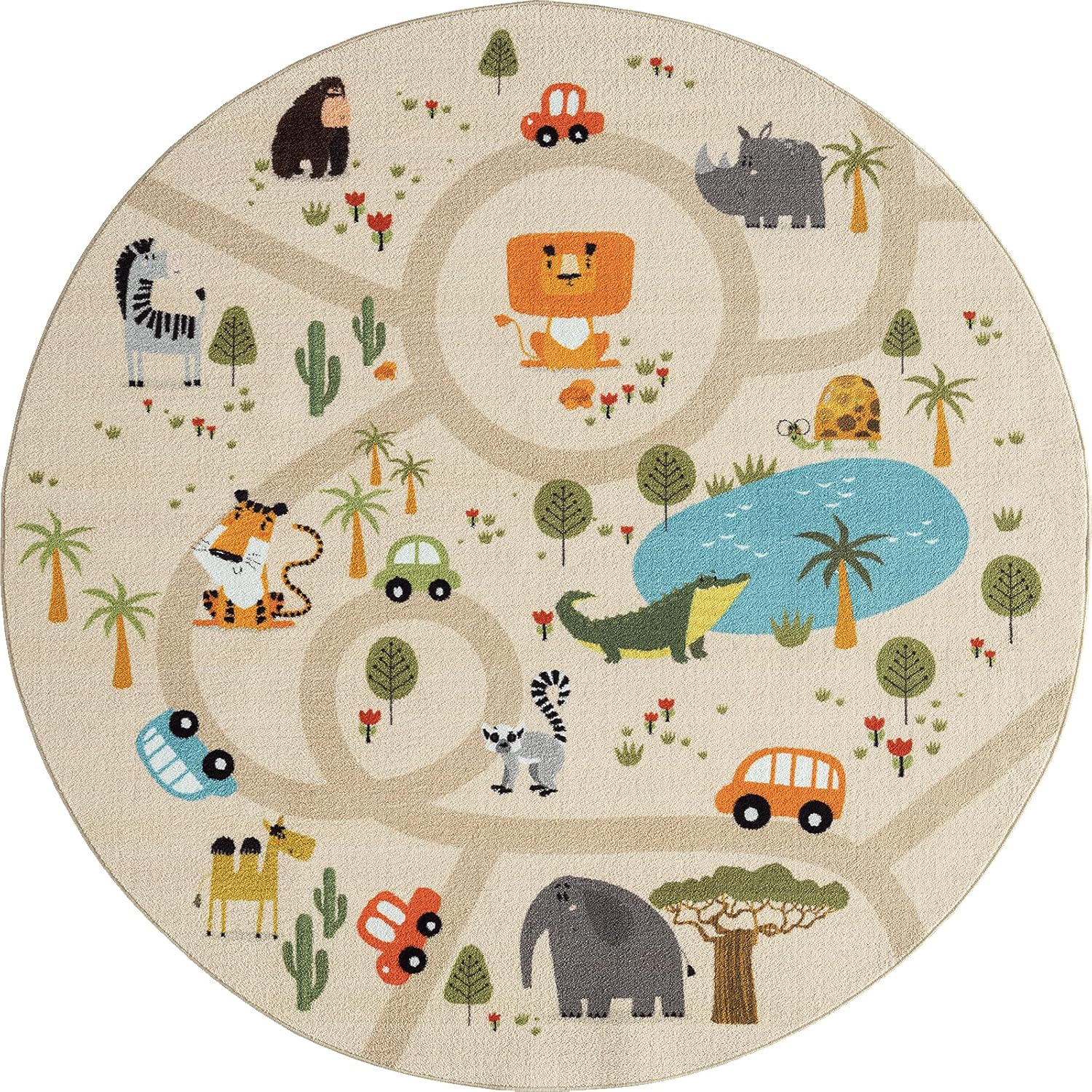 the carpet Happy Life Children’s Bedroom Rug Play Mat Street Rug Jungle Animals Car Beige 200 x 290 cm